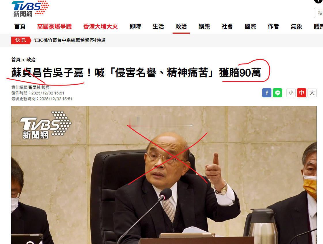 吴子嘉言论滋油过了头嘴大要赔钱,赔苏绿蛙贞昌90万元抬币两年前吴子嘉说苏、陈时台