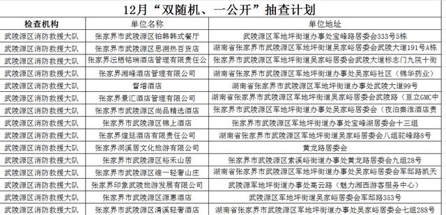 为全面推行“双随机、一公开”监管改革,进一步落实消防监督检查工作,创造良好的消防安全环境,12月1日起至12月31日,武陵源区消防救援大队将对全区重点单位进行随机监督抽查。特制定抽查计划并公告如下(点击下方图片查看完整名单)