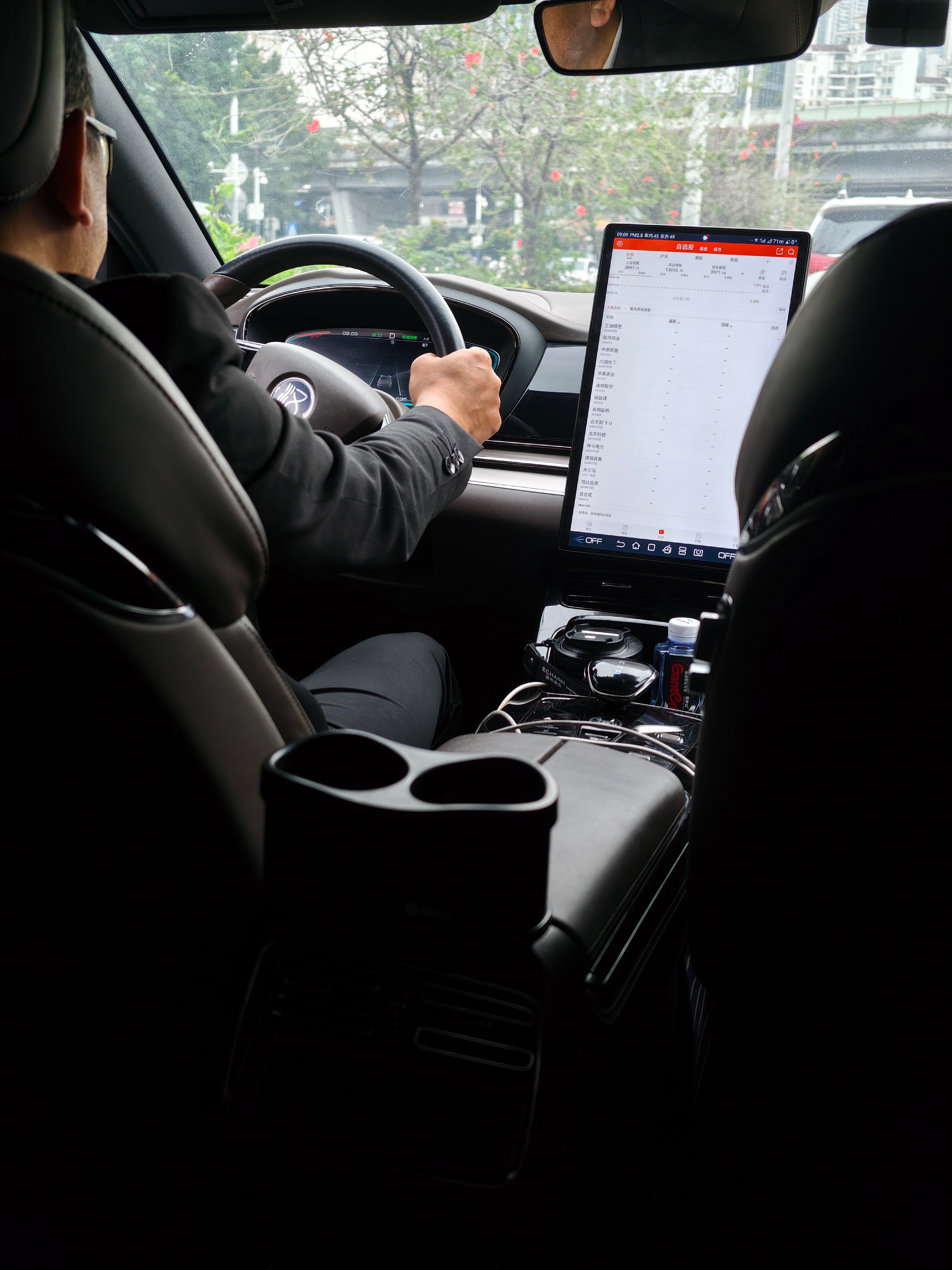 出差打车来了台比亚迪汉没想到中控大屏还可以看股票