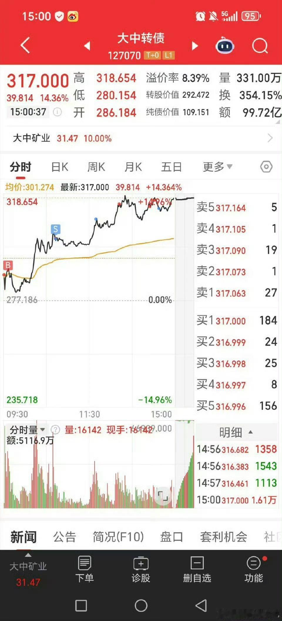 没时间看盘,要不大中转债不该去的,没时间看只能集合进,东时转债也是,大中转债小亏割肉,东时转债大涨出!!!大中不行了,上周还能捞二十多点,这周明显弱了可转债关晓彤听分手歌100多遍鹿晗知道吗
