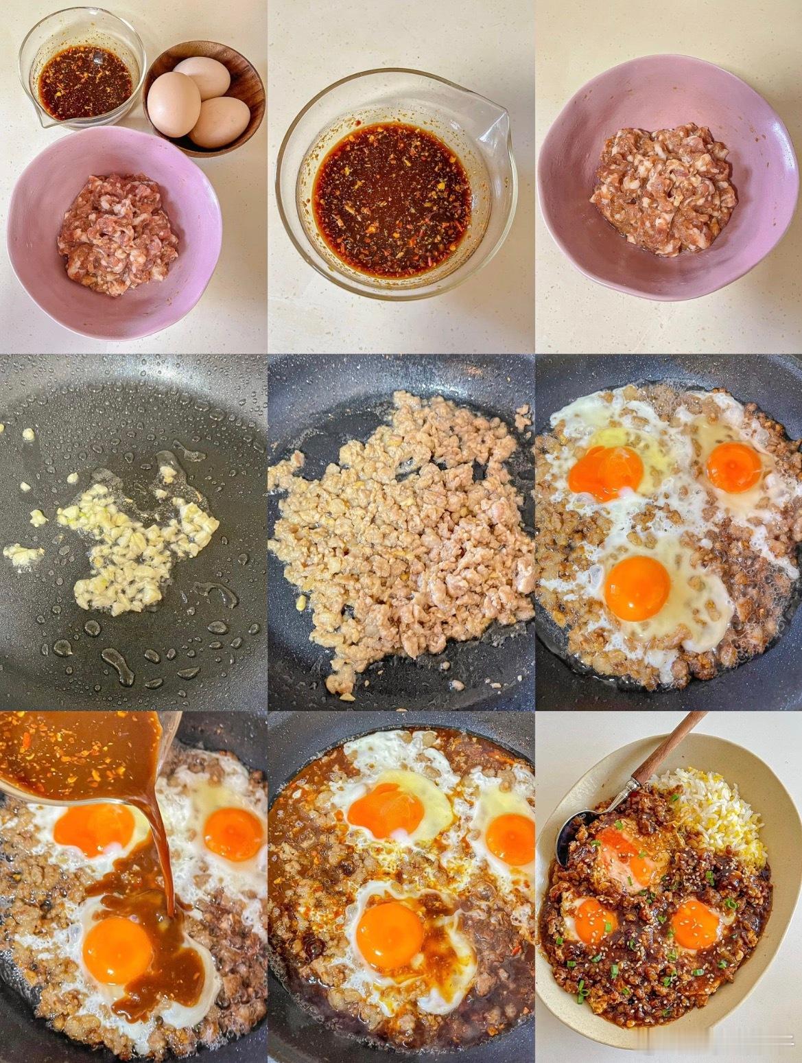 最近老刷到这个鸡蛋肉沫盖饭今天终于做了~配米饭真嘟一绝!食材:🍛鸡蛋➕肉沫酱汁:🥣1勺生抽➕1勺耗油➕半勺老抽➕半勺醋➕1勺生粉➕1勺辣椒粉➕少量盐➕少量白胡椒粉(搅拌均匀备用)做法:🍳1️⃣肉沫用1勺耗油1勺生抽 1勺淀粉翻拌均匀 喷一层油2️⃣锅热放油 把大蒜末爆炒出香味 放入肉沫 炒出油脂3️⃣打入3个鸡蛋 等鸡蛋凝固后倒入酱汁 小火慢慢煮至浓稠即可食材就只有鸡蛋和肉沫~ 而且做法简单 三步就可以搞定肉香四溢!香味扑鼻 汤汁巨浓稠~鸡蛋扒开还是流心的 搭配米饭嘎嘎香😎好吃到转圈圈⭕组个冬日养生局温暖的食光兴趣稀引力计划