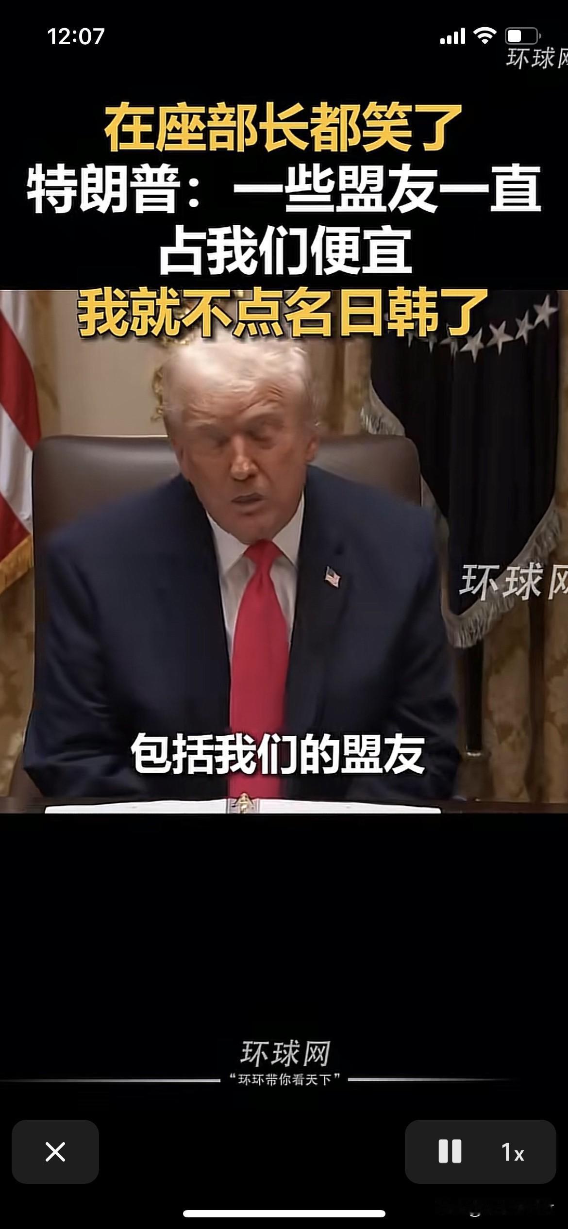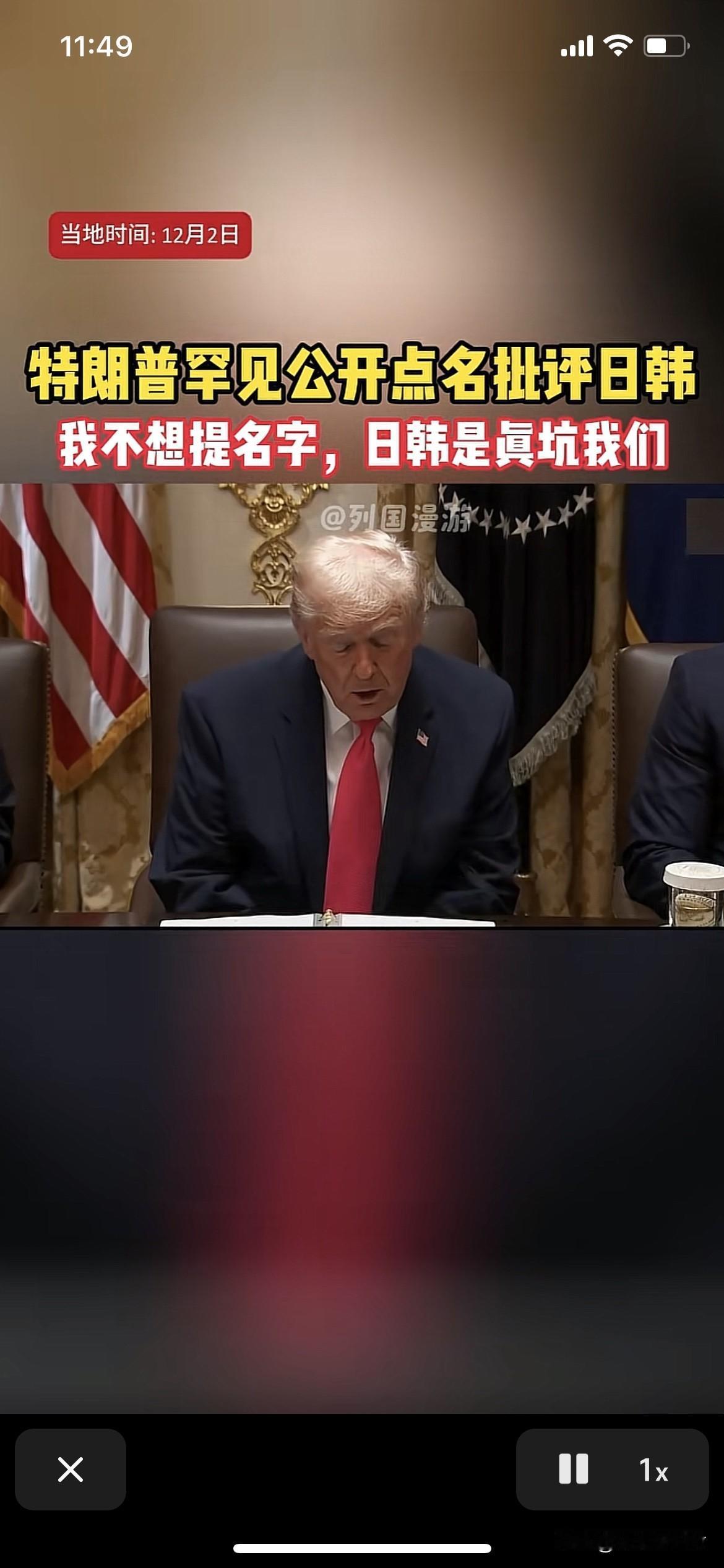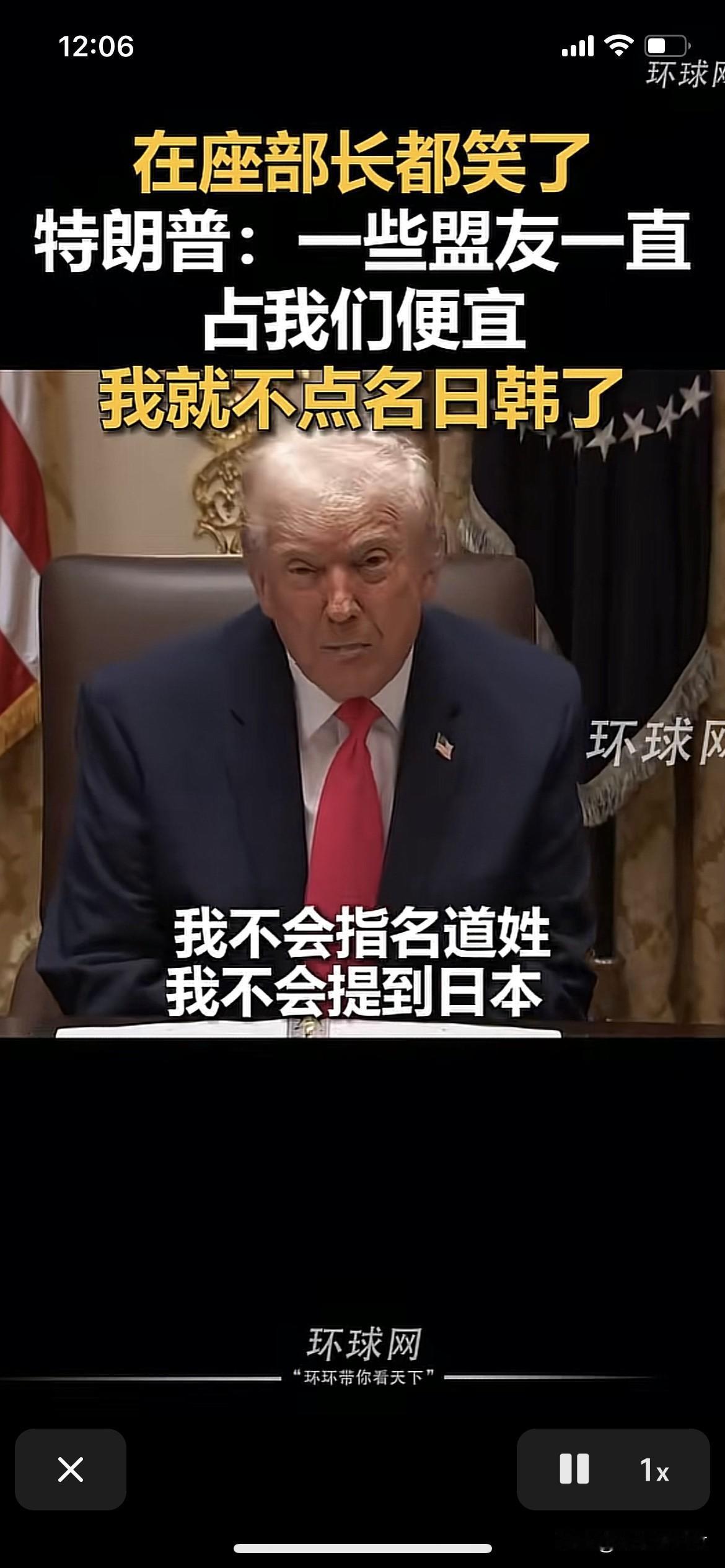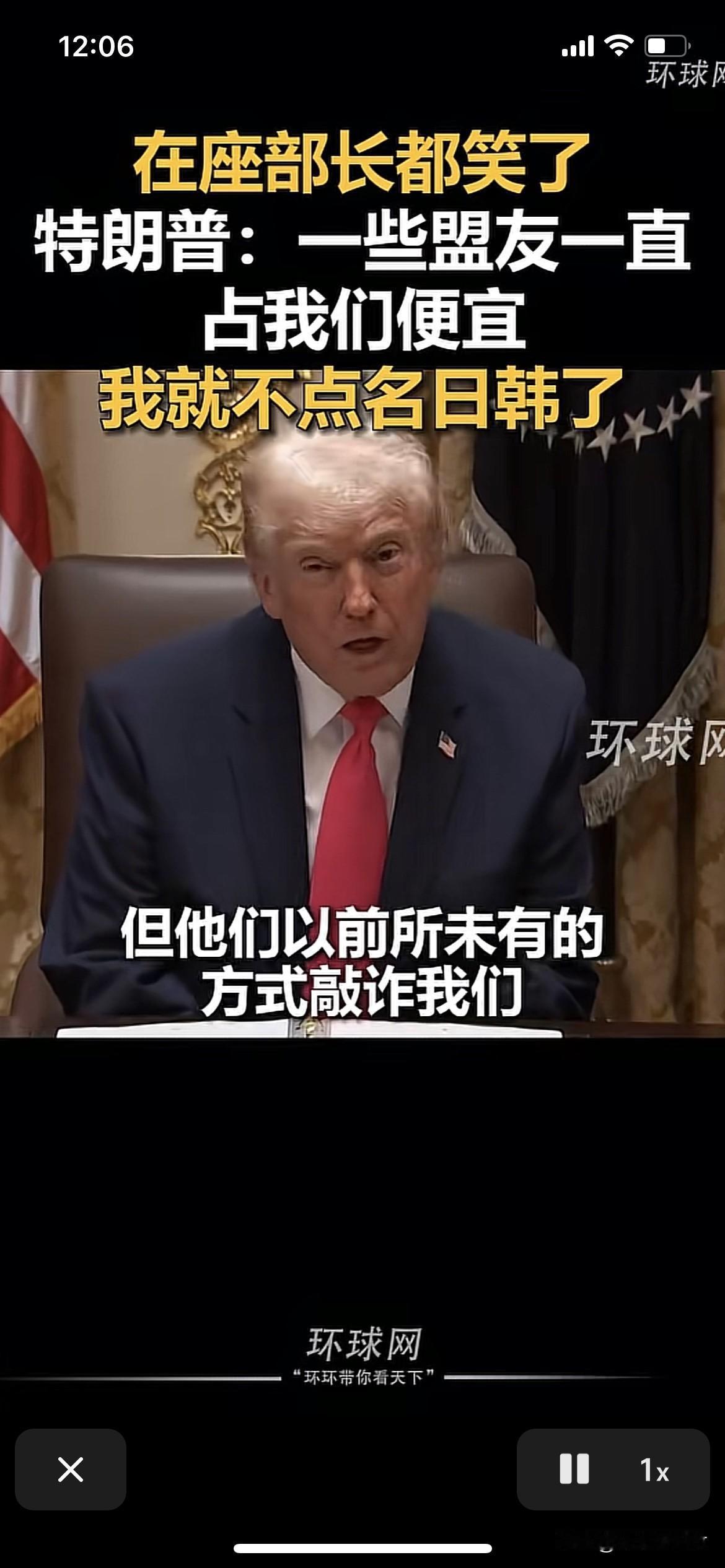 特朗普说有些盟友一直在占我们的便宜。我就不提名字了。比如日本。比如韩国。他们窃取