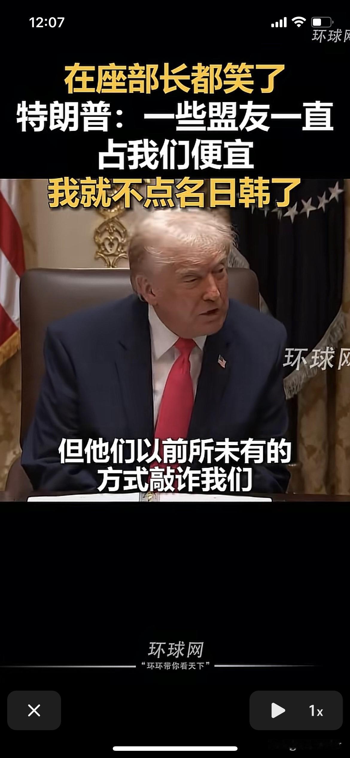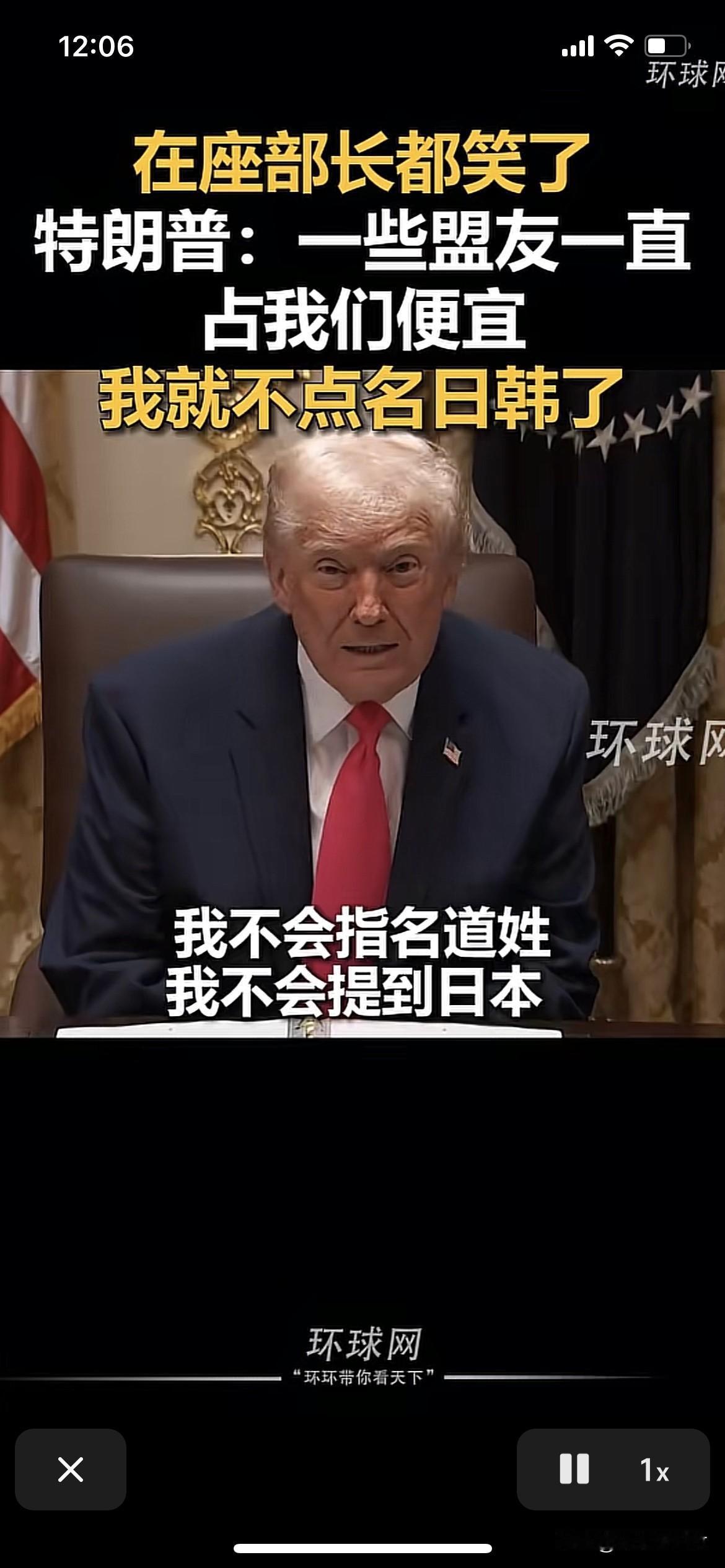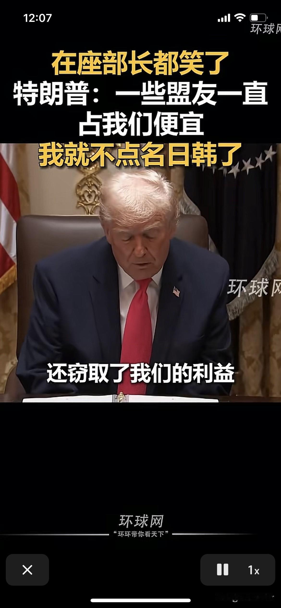 特朗普说有些盟友一直在占我们的便宜。我就不提名字了。比如日本。比如韩国。他们窃取