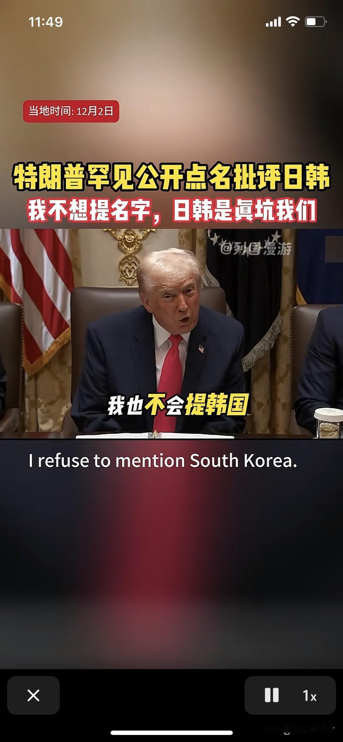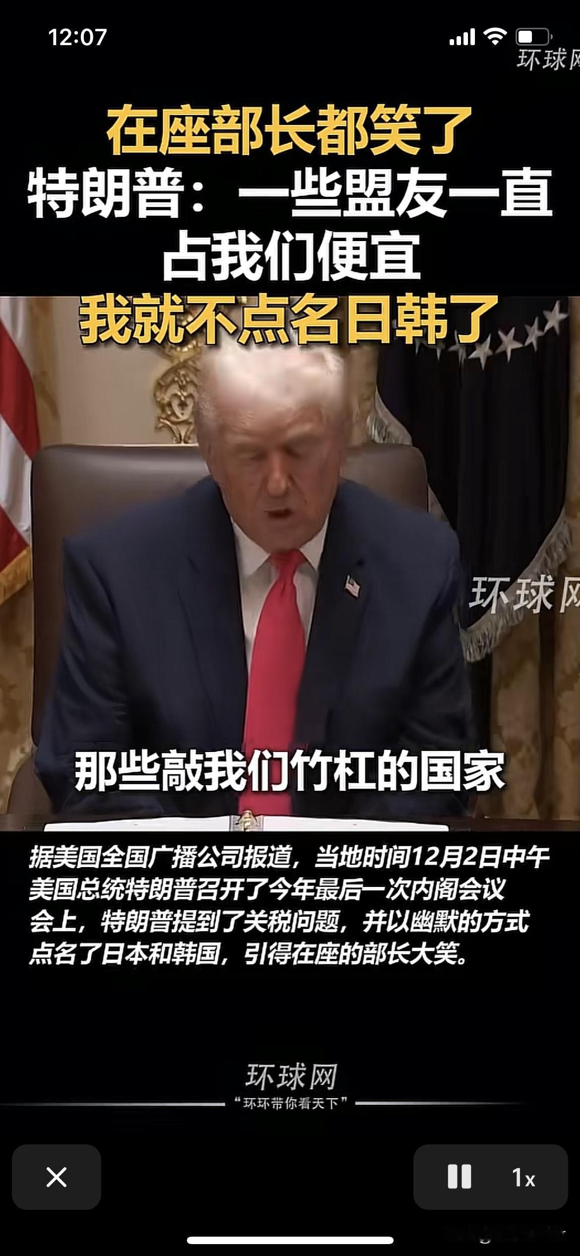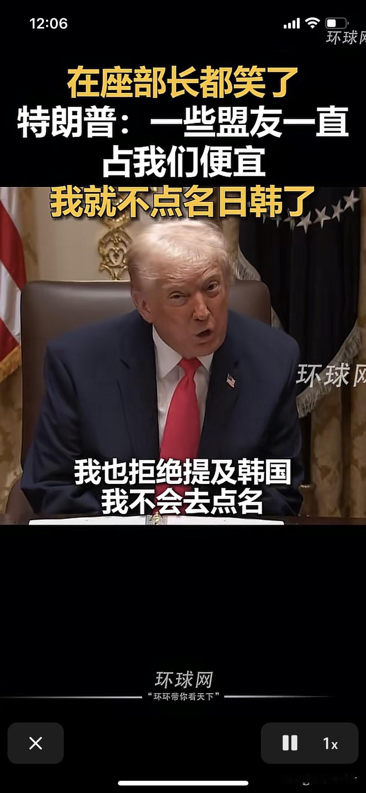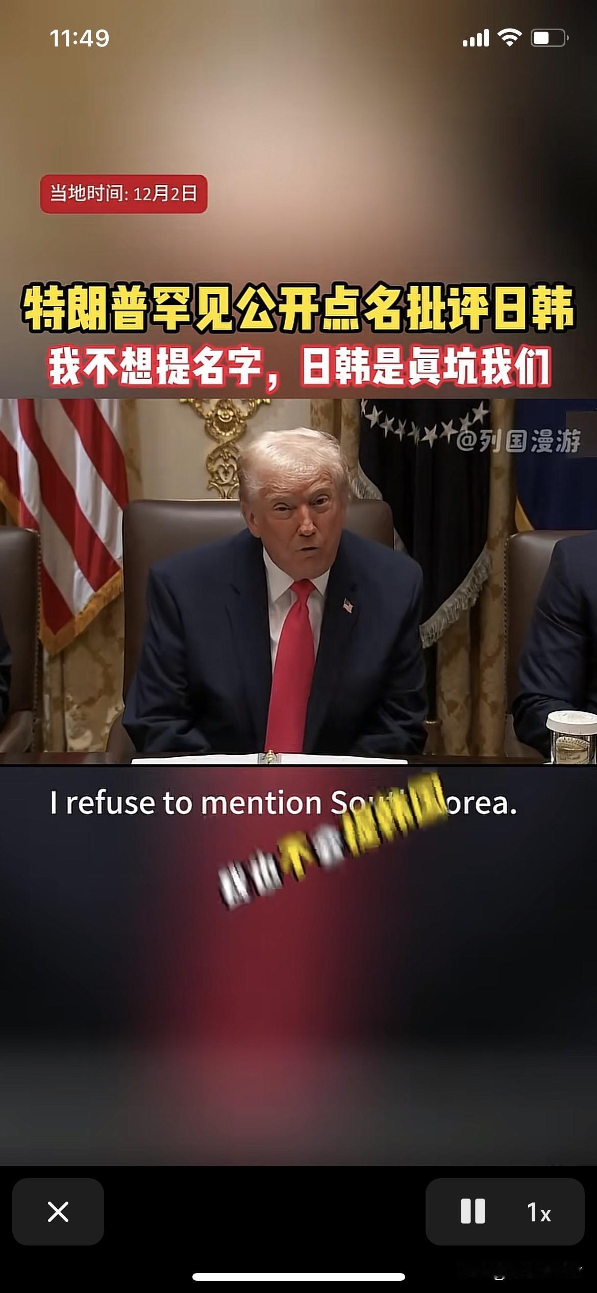 特朗普说有些盟友一直在占我们的便宜。我就不提名字了。比如日本。比如韩国。他们窃取