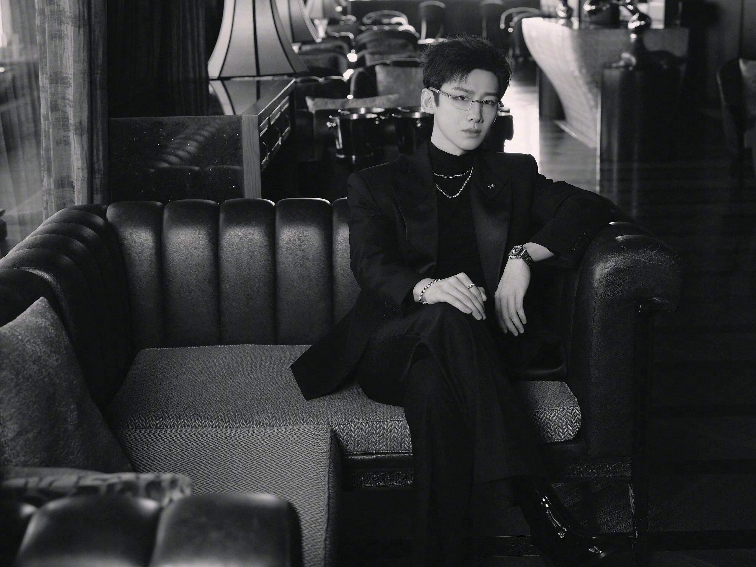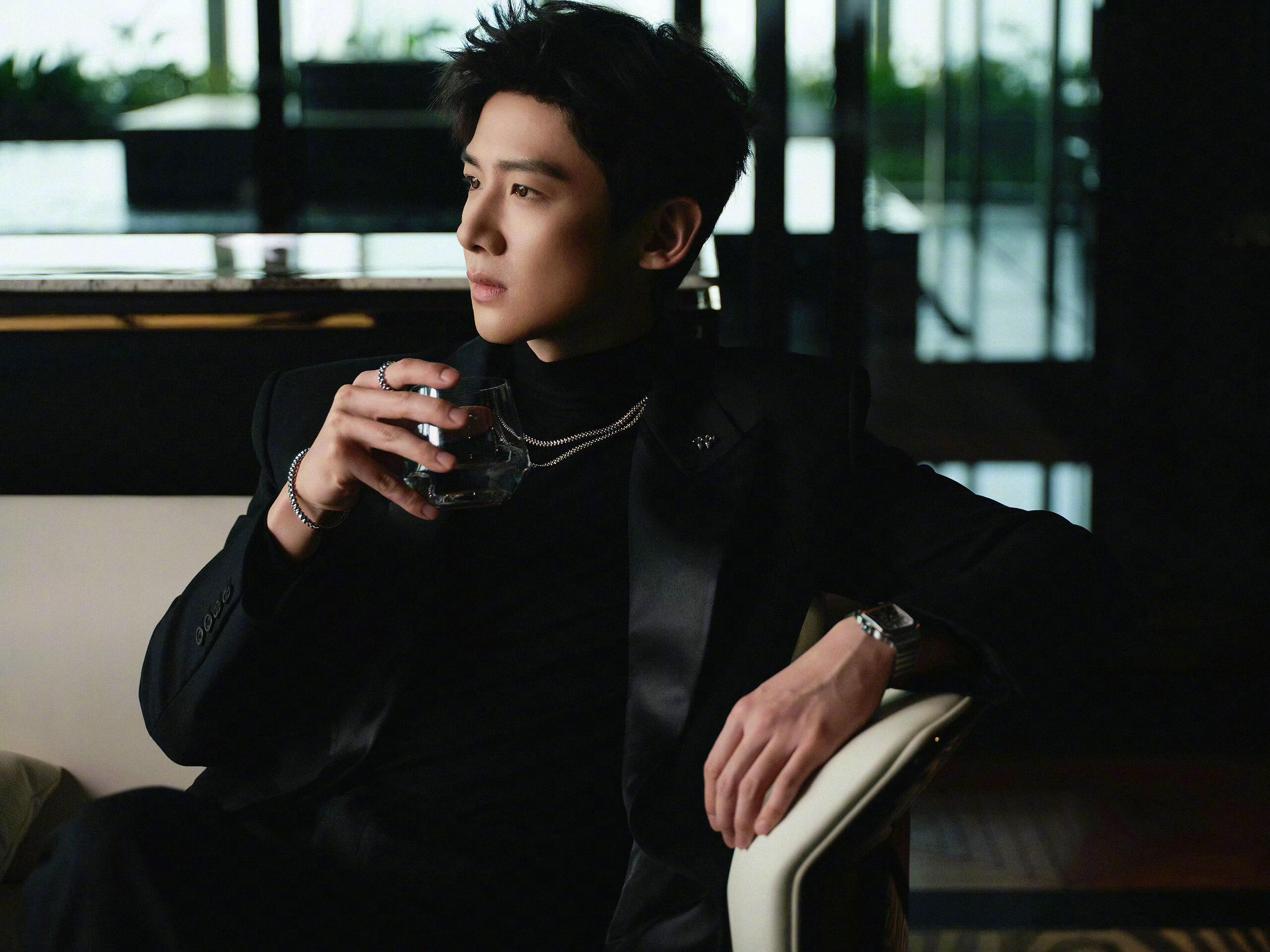 白敬亭 x Cartier白敬亭卡地亚南京圣诞点灯活动造型,完全是总裁级别的。全黑西装搭高领内搭,金属项链与眼镜衬出冷冽质感,慵懒坐姿里裹着绅士氛围,太松弛了吧