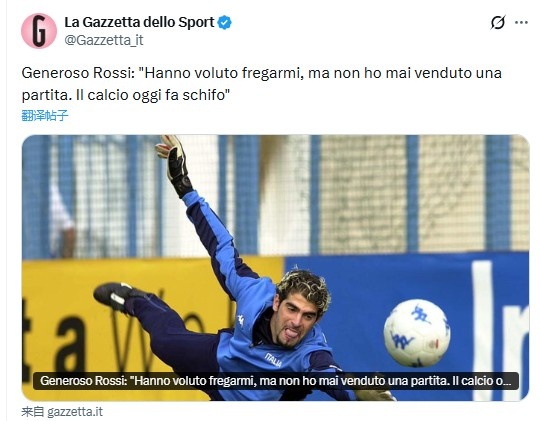曾因涉赌被禁赛!前意大利门将罗西:我从未赌球或操控比赛