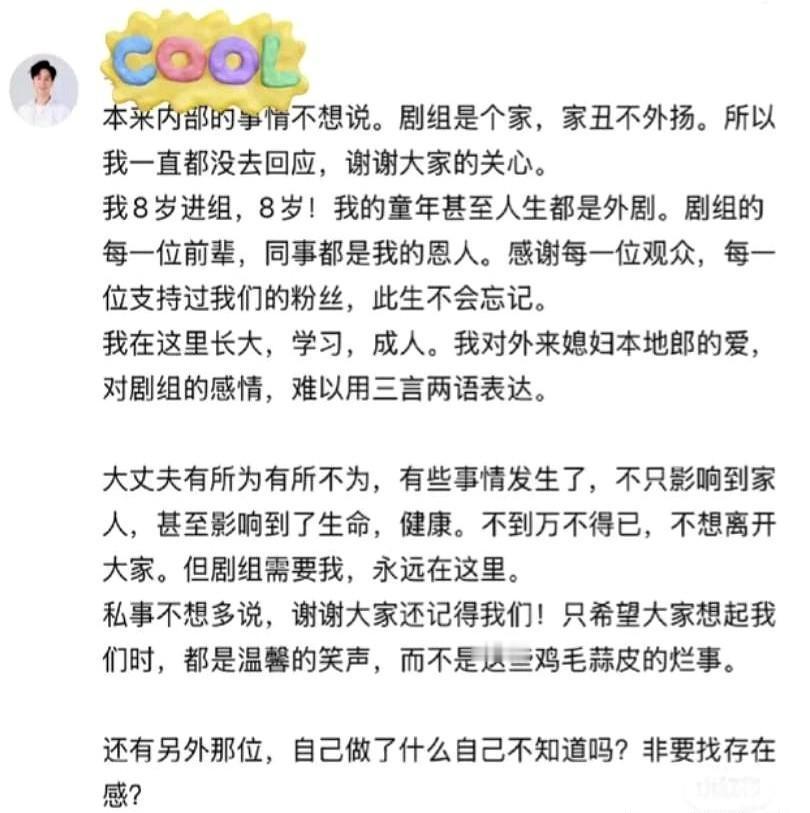 昨晚粤语长寿剧外来媳妇本地郎的康天庥扮演者在微博写长文说自己被编剧“封口”,编剧随后甩出截图暗示问题在演员太太不让拍牵手吻戏,两条博文掐在热搜前排,剧粉表示追了四千多集终于吃到“戏外大型修罗场”,点赞量两小时破十万,新旧观众被吸回屏幕看番外. 先看信息链,演员三十出头,十年前进组从“小表弟”升男一,一路陪着康家闯关,微博粉丝一百二十万却只发四百条内容,曝光度并不高,编剧团队则是剧集“元老”,豆瓣条目列出参与编剧的集数超过三千,双方突然同框互怼不像蹭流量更像剧本需求与私人边界真撞车;演员否认受限,编剧指向配偶,真相暂悬,工作流被家庭意见卡脖子才是制播链最扎心的漏洞. 长寿剧角色与演员易绑定,观众对康天庥的记忆停在“胖胖校服小孩”,一位广州网友回忆十多年前在电视塔站见过他和母亲上车还会点头打招呼,而如今同一个人携配偶亮相活动被评价“略高调”,时间拉伸了成长曲线也暴露管理老化,如果创作环境不升级,下一个十年仍可能陷入同样僵局. 弹幕有人提议干脆拆队另起 IP,做个“康家新三宝”,别笑,这招在乡村爱情衍生剧里试过,收视虽没翻倍却成功拽回部分年轻观众,说明观众乐意给熟面孔新故事,只要剧本敢动刀、导演肯放权、演员认清“角色只是角色”的行业共识. 这场对喷能否变成体系修补,取决于剧方是否把“拍或不拍亲密戏”的决定交回专业判断而非家庭协商,若能把具体细则写进合同并定期评估,闹剧就可能变成升级包,否则观众只会记住场外冲突忘掉剧情本身,这对任何长寿剧都是最亏的结局.