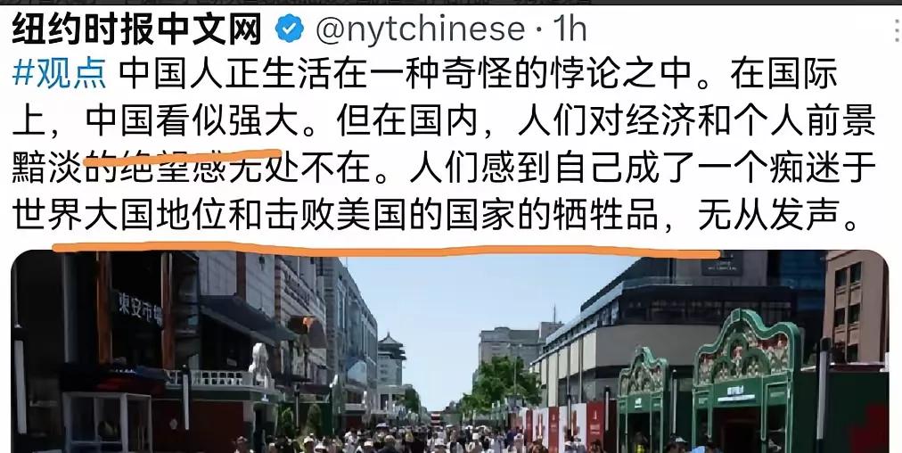 [关于"大国崛起"与小民尊严"的关系,这两家媒体观点完全对立。] 图一是京报网(北京日报网络版),它旗帜鲜明地痛批龙应台说的"我不在乎大国崛起,只在乎小民尊严"。 图二的纽约时报却把"大国崛起"和"小民尊严"对立。 纽约时报显然用心险恶,用一个错误的事实来为类似于龙应台的观点背书。 我认可北京日报的观点,即"大国崛起"可覆盖"小民尊严",或者说大国崛起=小民尊严。也可以说没有"大国崛起",又何来"小国尊严"? 北京日报在今天发表这篇文章,说明当下民间很关注这个话题。 纽约时报和龙应台在或明或暗间挑起"大国崛起"和"小民尊严"的对立,大家一定要擦亮眼睛。