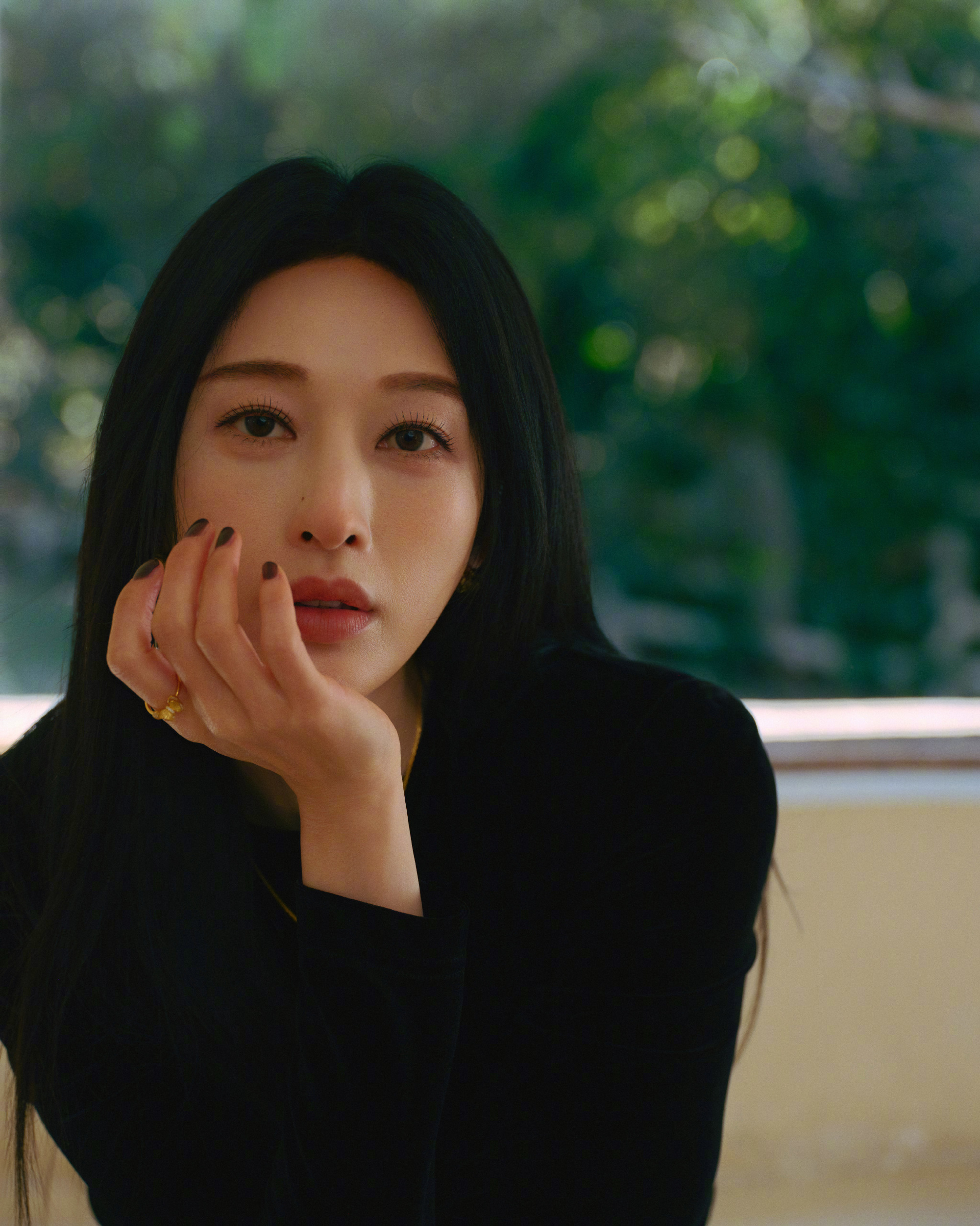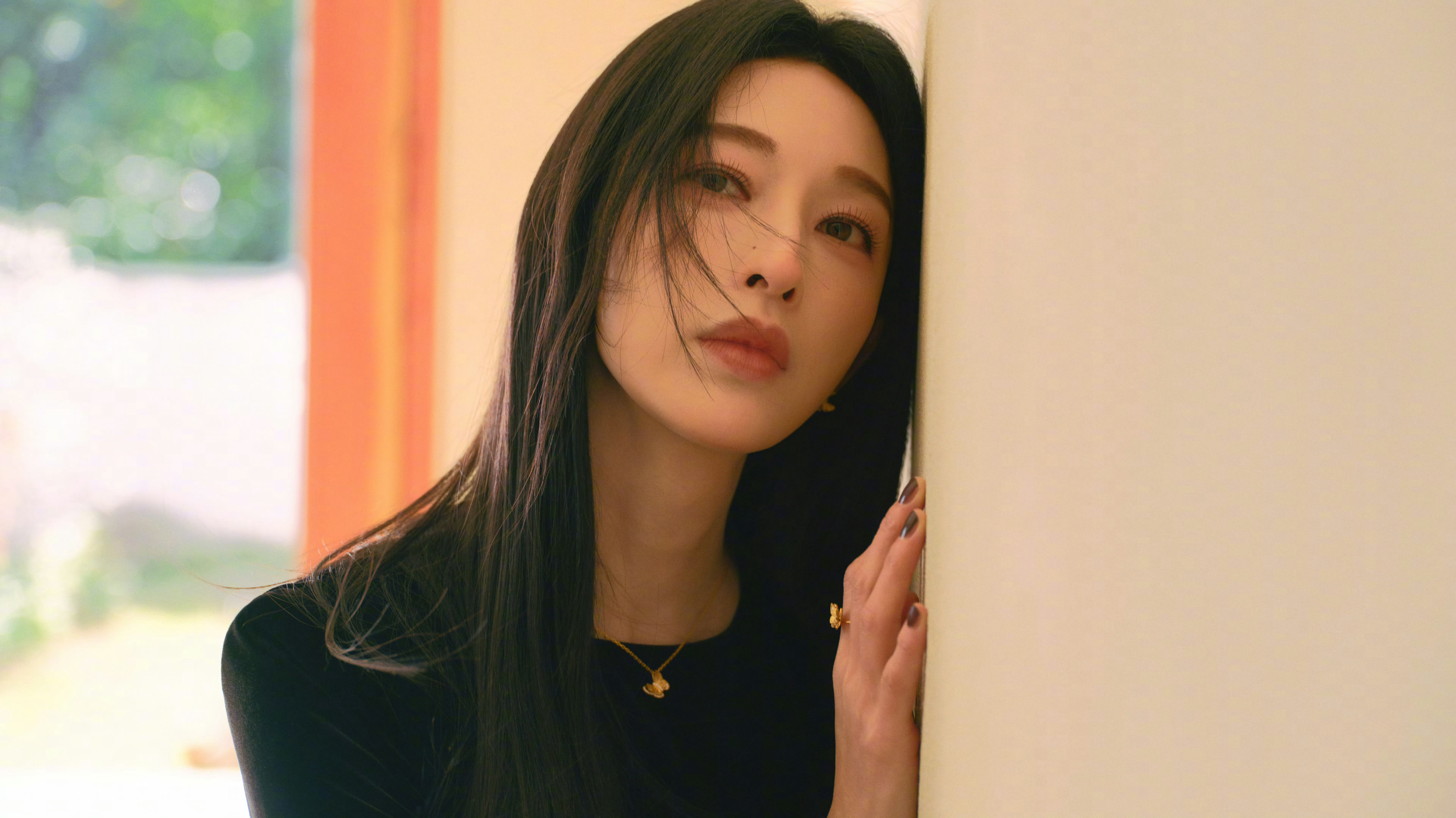 张俪,淡粉色的秋日穿搭色彩。张俪