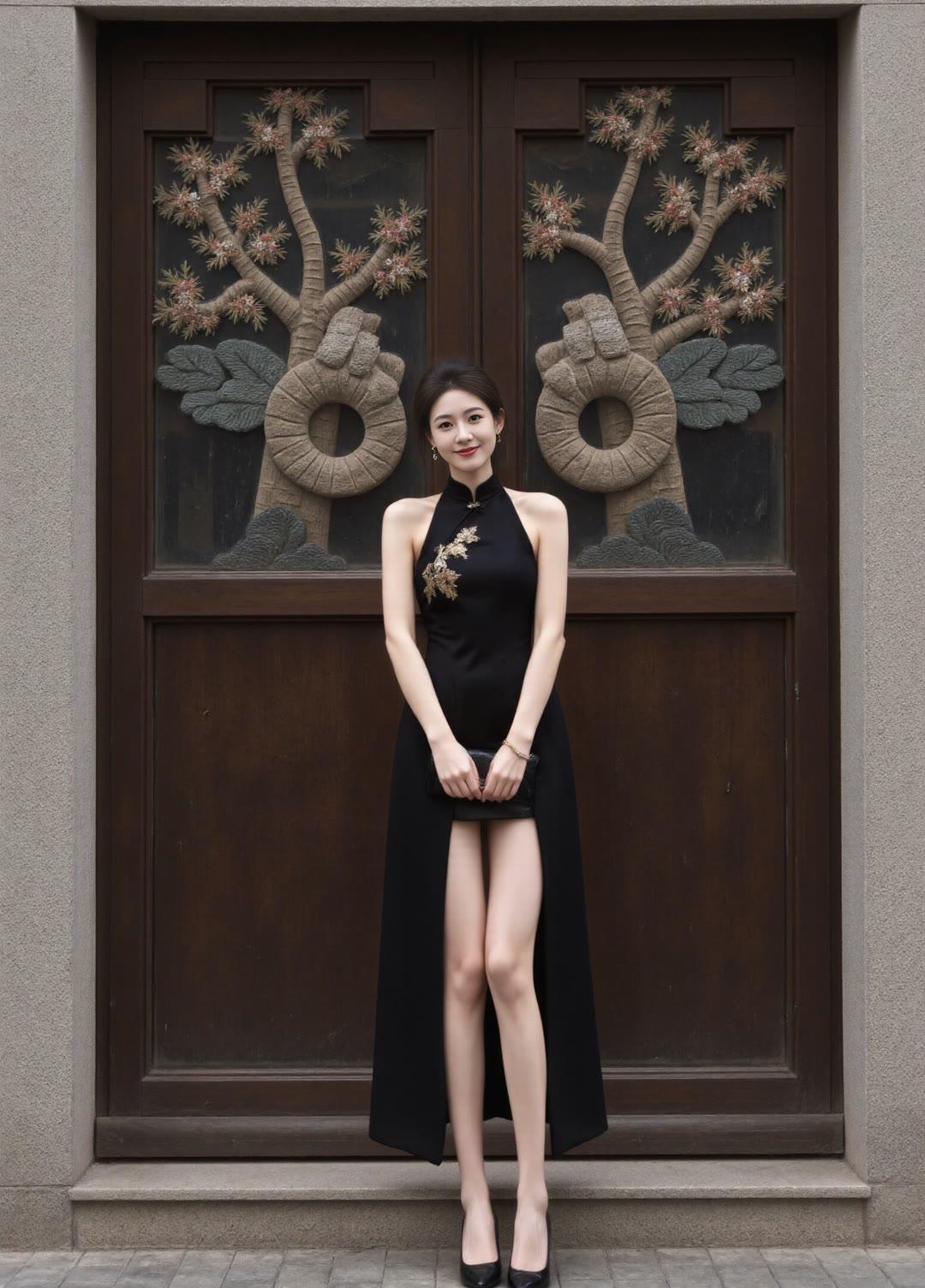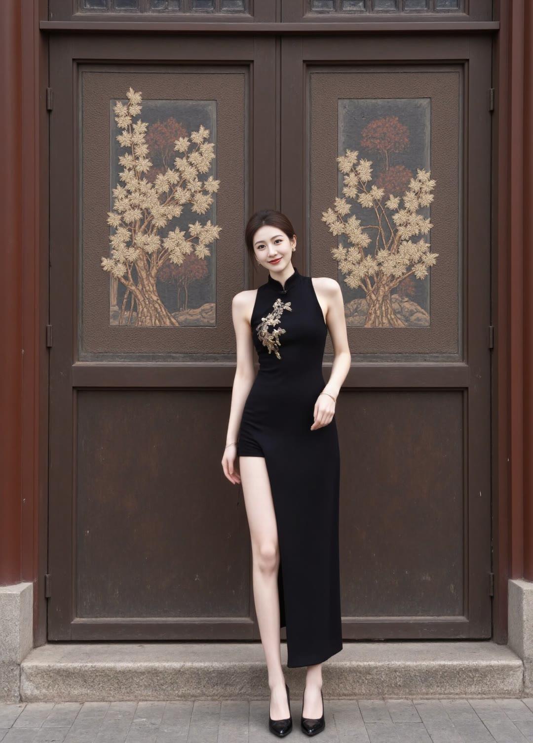 东方女性穿旗袍为什么这么美黑色无袖中式旗袍,演绎成熟优雅风格