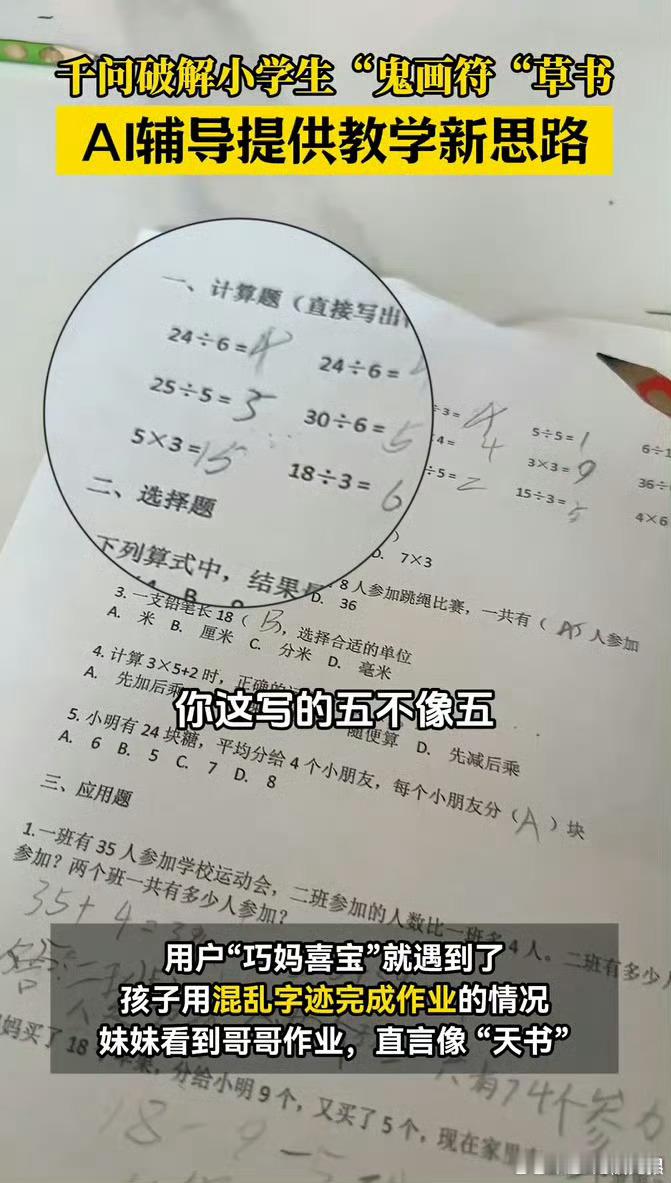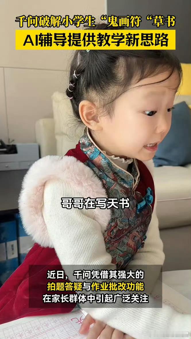 千问批改小学生草书作业看来千问是家长的“降压神器”!亲子关系和谐了,焦虑少了,高