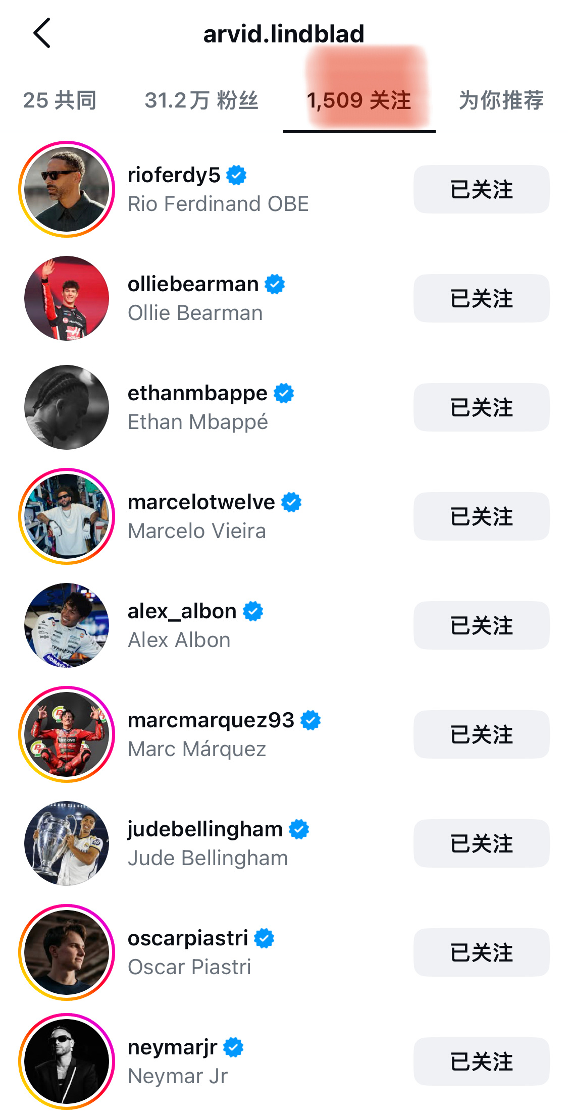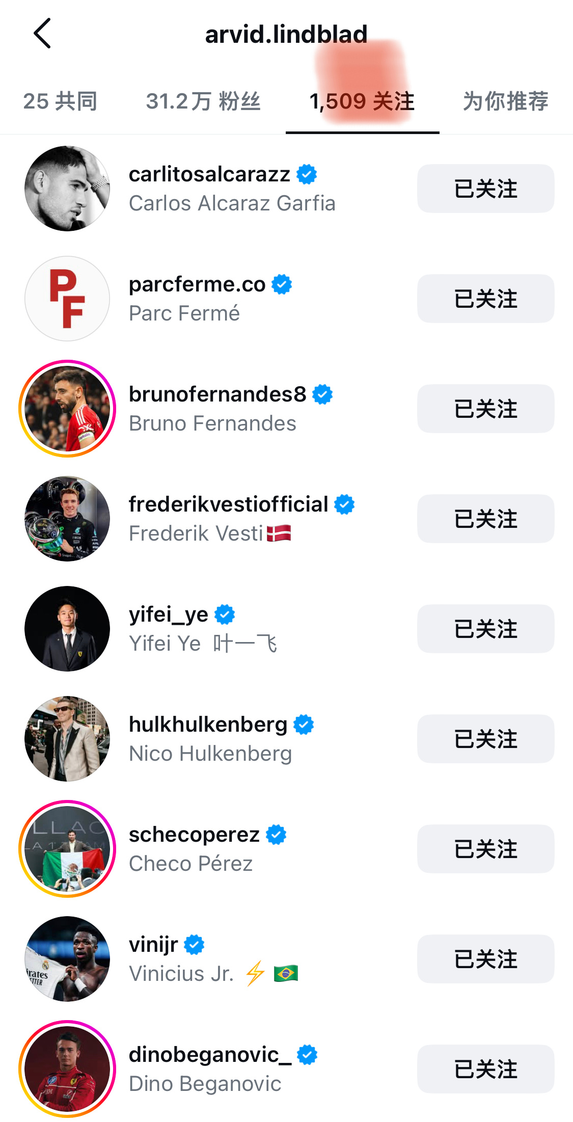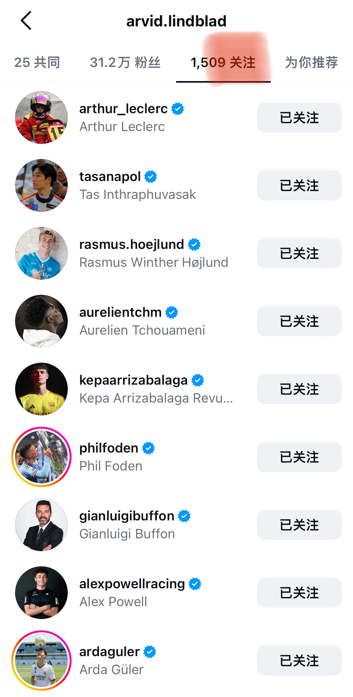 林德布拉德 这小帅还关注了挺多足球熟人的呢🫣(围场足球赛名单+1) 红牛官宣2