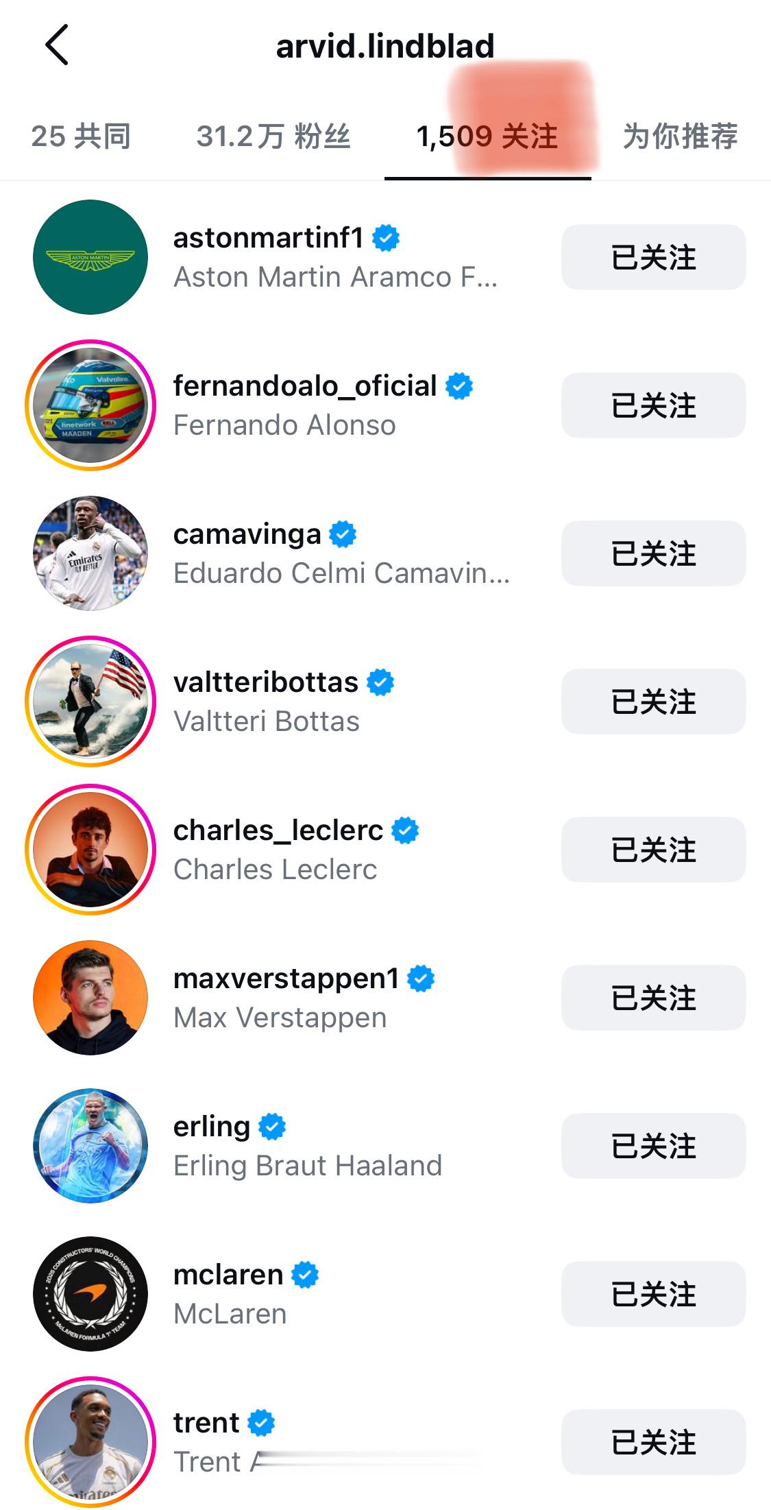 林德布拉德 这小帅还关注了挺多足球熟人的呢🫣(围场足球赛名单+1) 红牛官宣2026赛季车手阵容