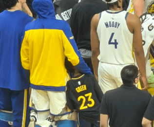 赛后,德雷蒙德-格林接受记者采访,在谈到今天儿子替补席观战的感受时说: