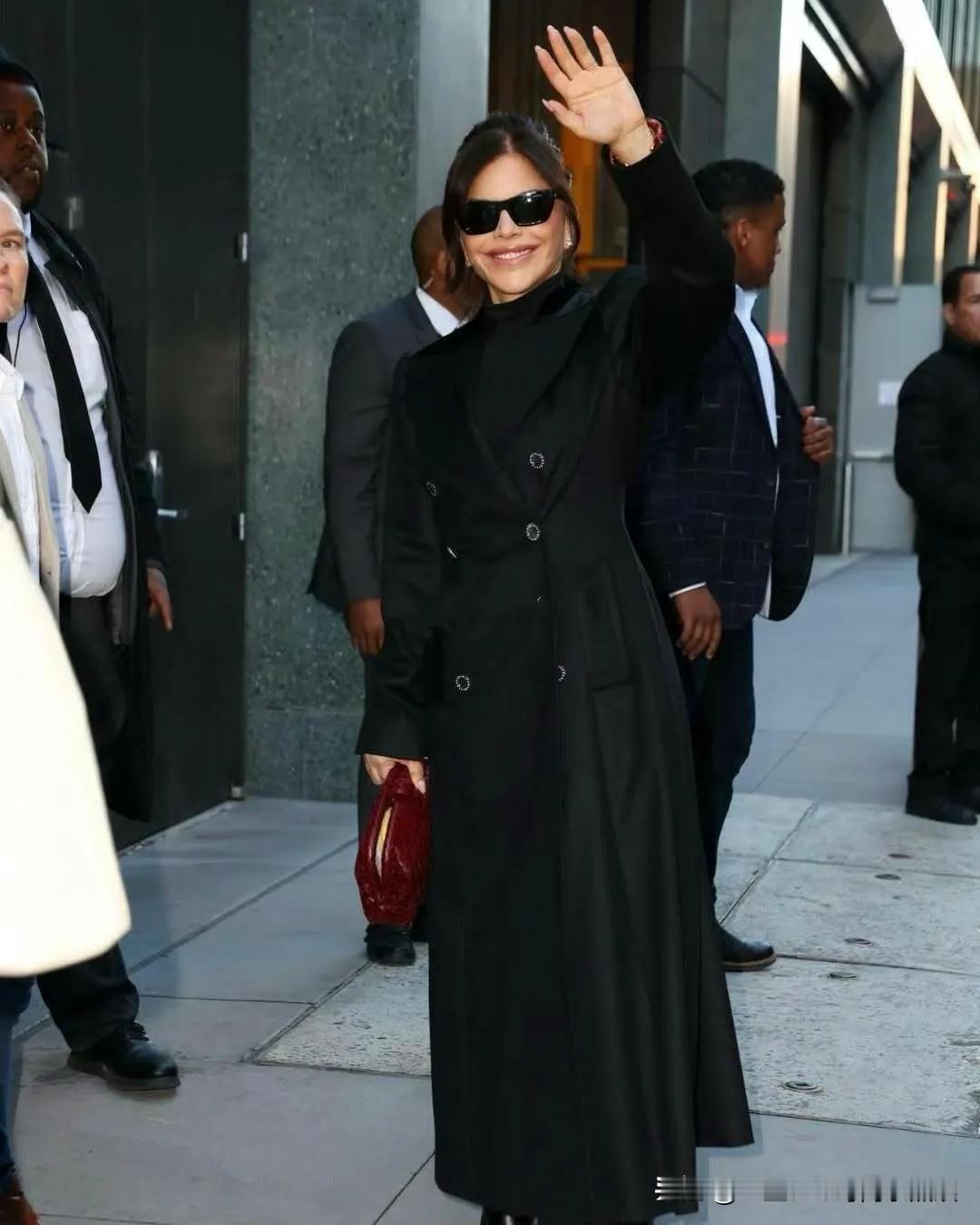 亚马逊老板娘劳伦.桑切斯现身纽约街头,穿着黑色风衣,手拿红色爱马仕包包,优雅又贵气,55岁的桑切斯真是越来越美,也越来越有贵妇范儿了。 近日,贝佐斯夫人劳伦.桑切斯在纽约参加节目录制,乘坐豪车,在保镖的陪同下现身,路人纷纷围观,一睹豪门夫人的风采。 桑切斯和贝佐斯爱情长跑超过8年,今年6月终于如愿成为了贝佐斯夫人,成为了人生大赢家。 自从婚后,桑切斯变化也是不小,人也越来越年轻了,穿着黑色长风衣,戴着墨镜,手里拿着红色爱马仕包包,优雅又贵气。 但是面对路人时,桑切斯笑着和大家挥手,端庄优雅,还是相当有亲和力的!