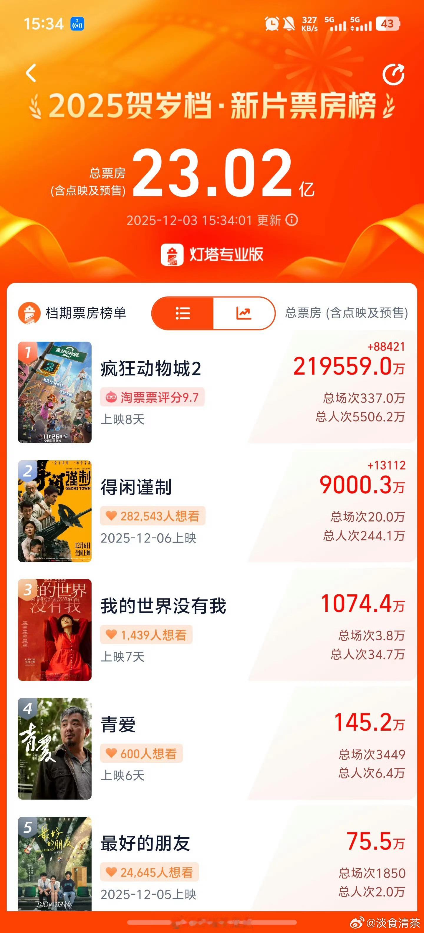 破亿就在眼前!!!得闲谨制预售票房破9000万