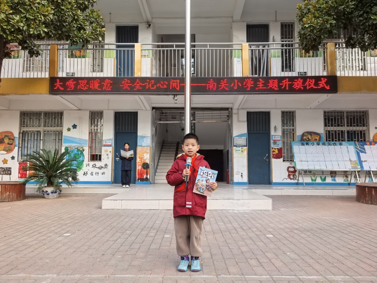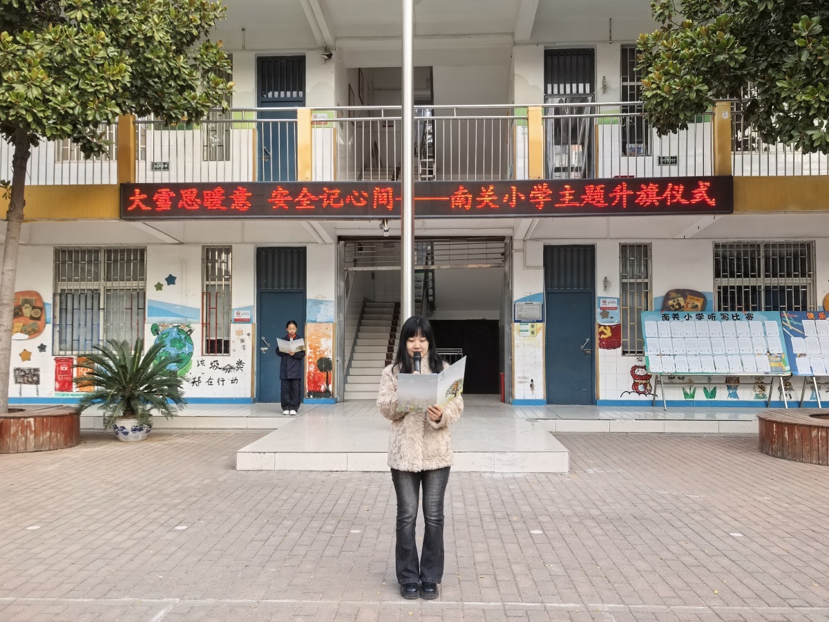 寒风虽凛,红旗愈艳。12月1日,郑州市管城回族区南关小学全体师生齐聚操场,在庄严的国歌声中,举行了以“大雪思暖意,安全记心间”为主题的周一升旗仪式。