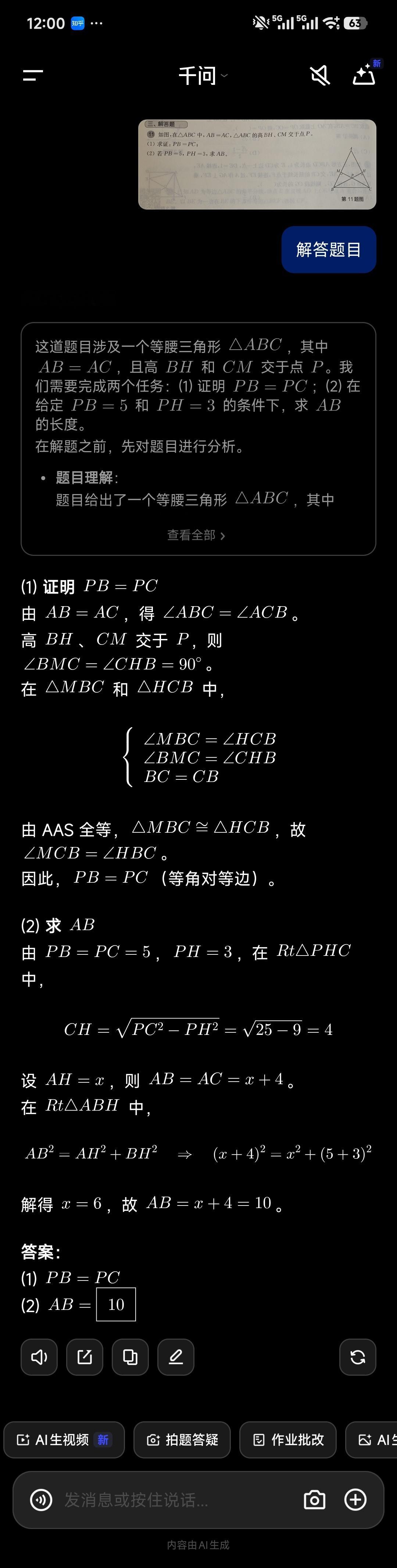 博主实测千问是初中数学辅导天花板 朋友们!刚刚发现了个好东西!我家神兽的初中数学题终于有救了!之前辅导作业真的头大,有些竞赛题我自己都看懵…直到试了千问这个拍照答疑功能——绝了!把题目一拍,它不光给出答案,居然像特级教师一样一步步拆解,连辅助线怎么画、公式为啥用这个都讲得明明白白!我家娃看完直呼“比老师讲得还细”!最让我安心的是,它题库太全了!从初一几何到初三函数,连少见的竞赛题都有解析。而且免费、不限次用,再也不怕孩子突然问倒我了 偶尔我还偷偷用它批改作业,检查效率翻倍。AI 真的让普通家长也能轻松辅导了~强烈推荐你们也试试!