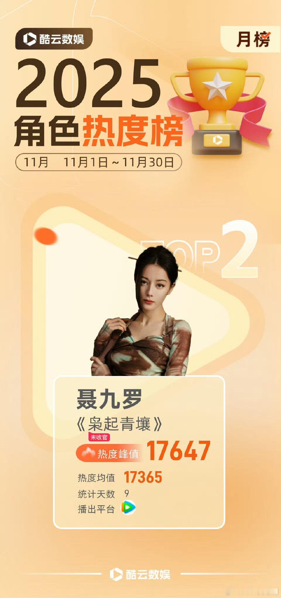 迪丽热巴《枭起青壤》聂九罗拿下多平台11月冠军🏆就是这个迪丽热巴🐮