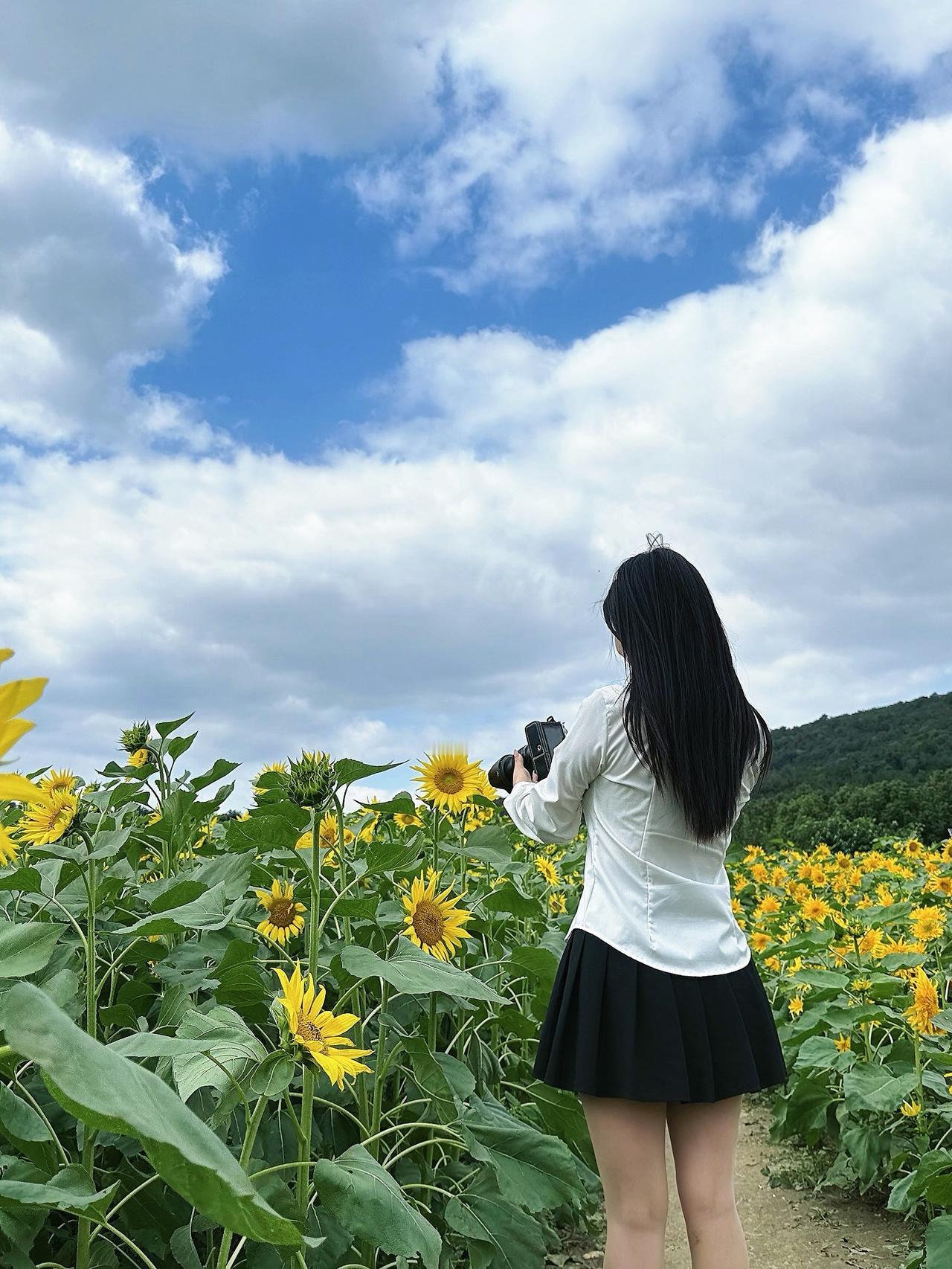 “云好看,我也好看”少女 向日葵 摄影 穿搭 花海 @抖音小助手 @抖音创作小助手