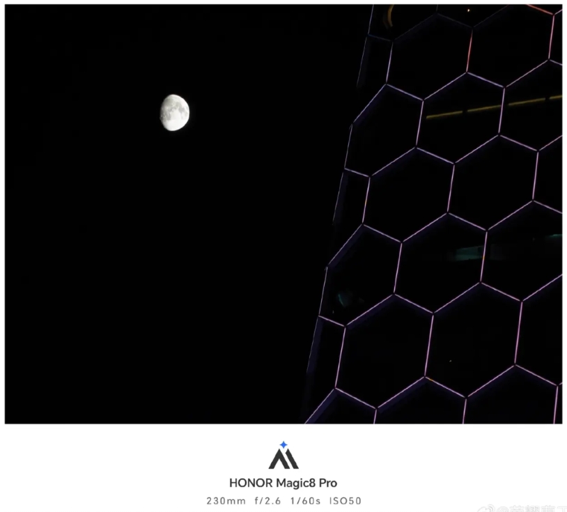 荣耀Magic8 Pro升级到118版本之后,影像能力会有发什么样的提升呢?刚刚看到荣耀研发工程师曹工,冒着北方冬天的寒风,测试全新夜景风格功能,拍摄月亮的样张效果还是蛮理想的,前景灯光亮化的大厦与背景天上的月亮相得益彰,氛围感拉满了
