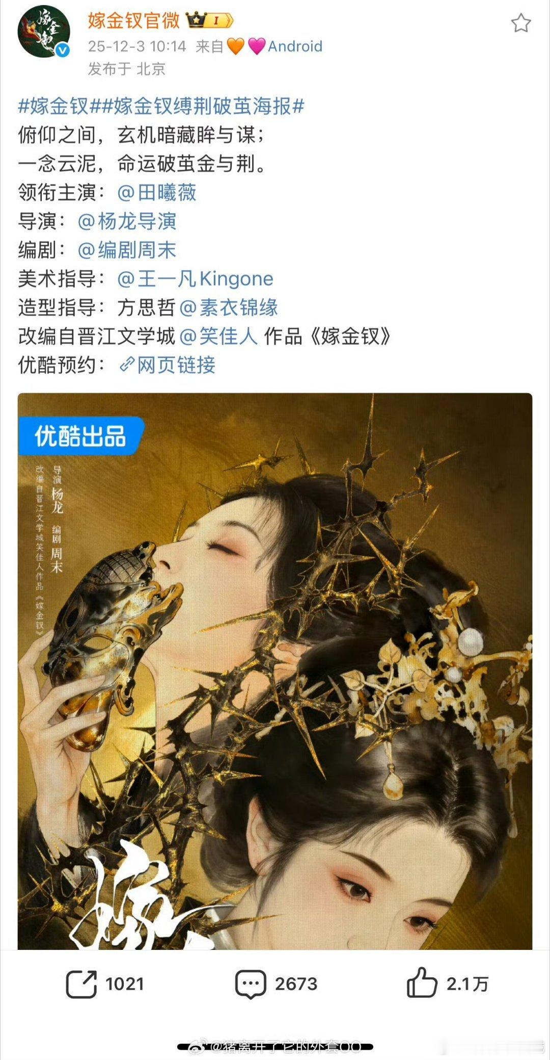 田曦薇嫁金钗官方海报和粉丝自制海报哪个赢了