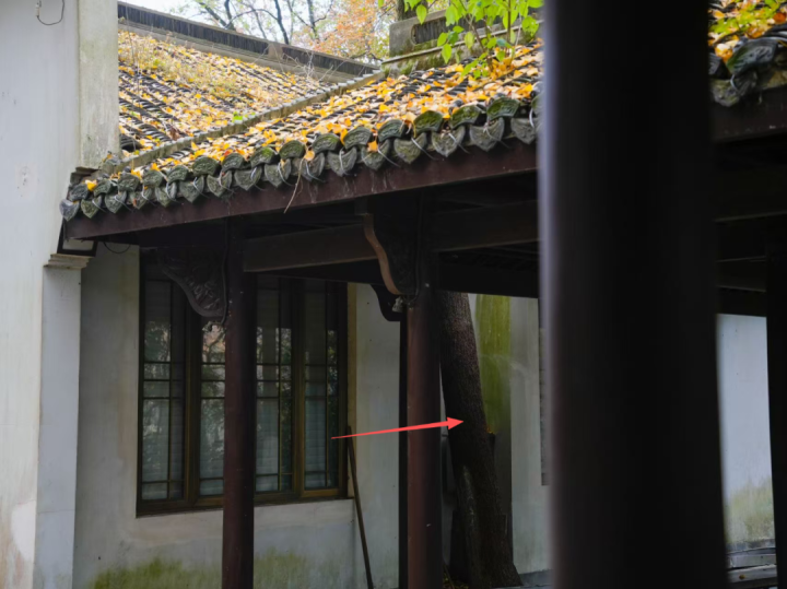 按照指示转过书院西南角,没几步就看到了一座廊亭,以及亭子旁那棵不起眼的“网红”银杏。