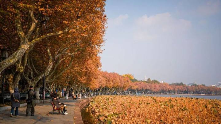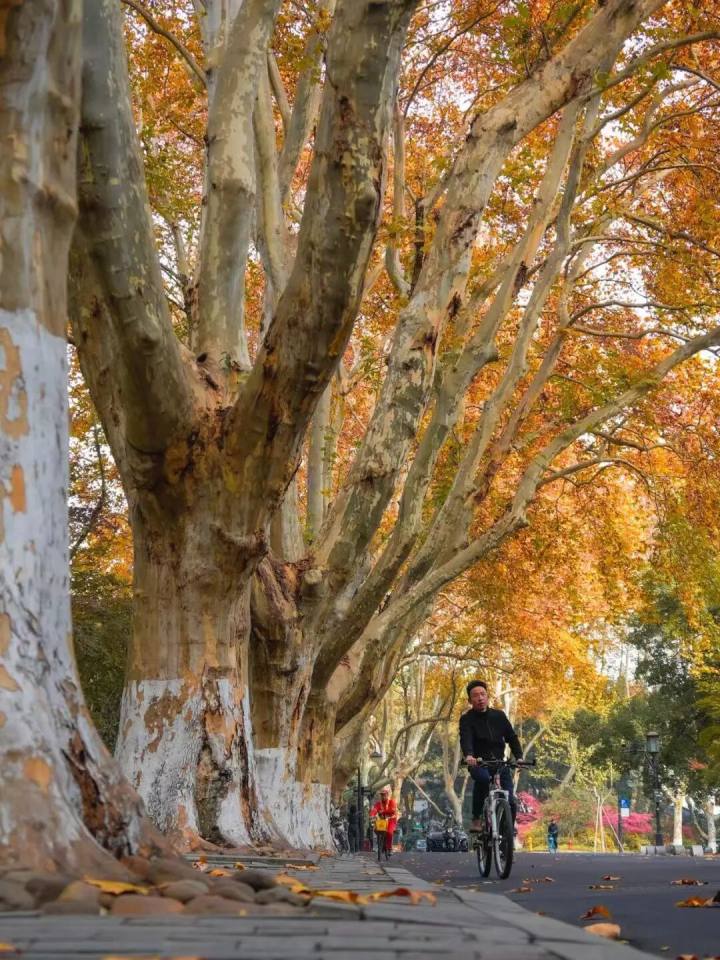 梧桐叶还在不紧不慢地飘落,骑自行车的人“叮铃铃”地穿过落叶的街道,有情侣悠闲地坐在湖边的长椅上晒太阳,路旁那些有着百年历史的老洋房静默伫立。