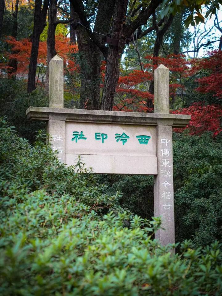 步入公园正门,途经红枫拱卫的西泠印社石牌坊,上山后没走多远就看到了敬一书院古朴的门庭。