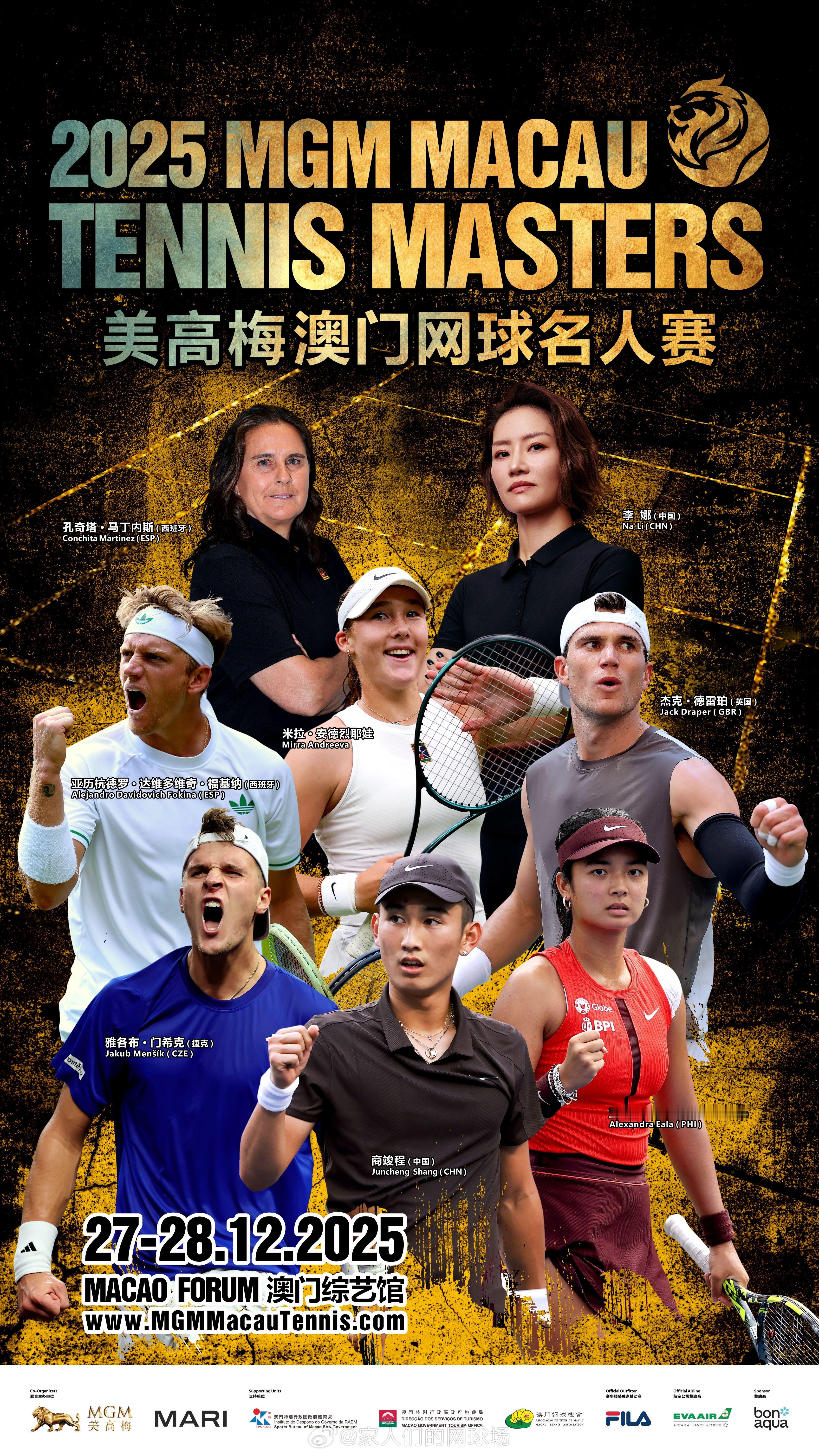 美高梅澳门网球名人赛 「2025美高梅澳门网球名人赛」赛事组委会今日官宣确认,ATP巡回赛中最具爆发力与观赏性的选手之一、世界排名第14位的亚历杭德罗 · 达维多维奇 · 福基纳正式参赛。这位西班牙名将以闪电般的步法与无所畏惧的打法著称,他在2025赛季表现亮眼,不仅多次闯入决赛、更数度击败世界前十,排名一路飙升至Top15行列。 本次赛事还汇聚了诸多国际网坛新生代力量:德雷珀、安德烈耶娃、伊埃拉、商竣程、门希克,同时邀请网坛传奇李娜与马丁内斯担任球队队长。 两队阵容如下:李娜队:德雷珀、商竣程、伊埃拉马丁内斯队:达维多维奇 · 福基纳、门希克、安德烈耶娃 完整赛事日程:首日——12月27日队长挑战赛14:00男单:商竣程vs达维多维奇 · 福基纳随后混双:商竣程/伊埃拉 vs门希克/安德烈耶娃随后男单:德雷珀vs门希克 次日——12月28日队长挑战赛14:00女单:伊埃拉 vs安德烈耶娃随后男单:商竣程vs门希克随后男单:德雷珀vs达维多维奇 · 福基纳颁奖典礼