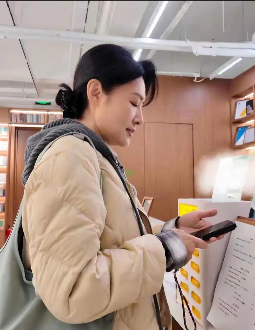周涛书店路透状态好绝!浅米色棉服+低马尾,松弛感直接溢出屏幕 谁能想到周涛逛书店这么有氛围感? 浅米色棉服裹得温柔又随性,叠搭格纹衬衫更显松弛,低马尾清爽利落,笑起来眉眼舒展的样子,和书店的文艺感适配度直接拉满——这哪是前辈,明明是把“知性优雅”焊在身上的姐姐啊✨