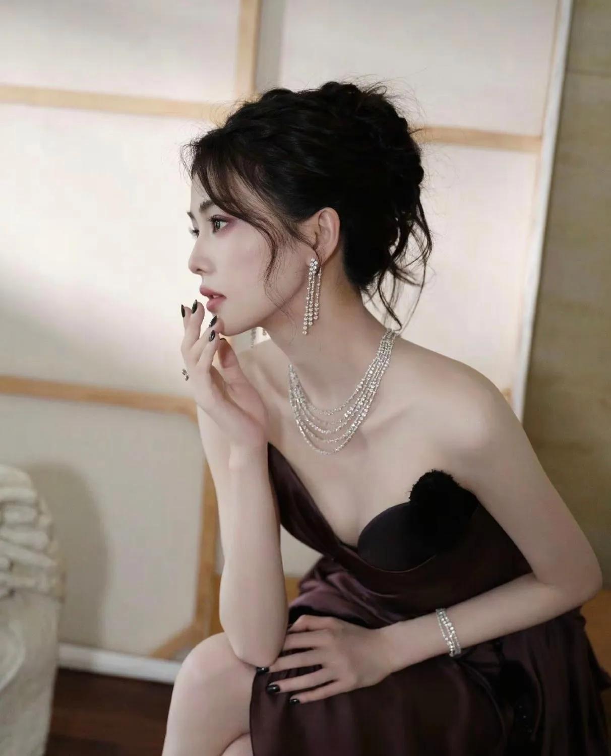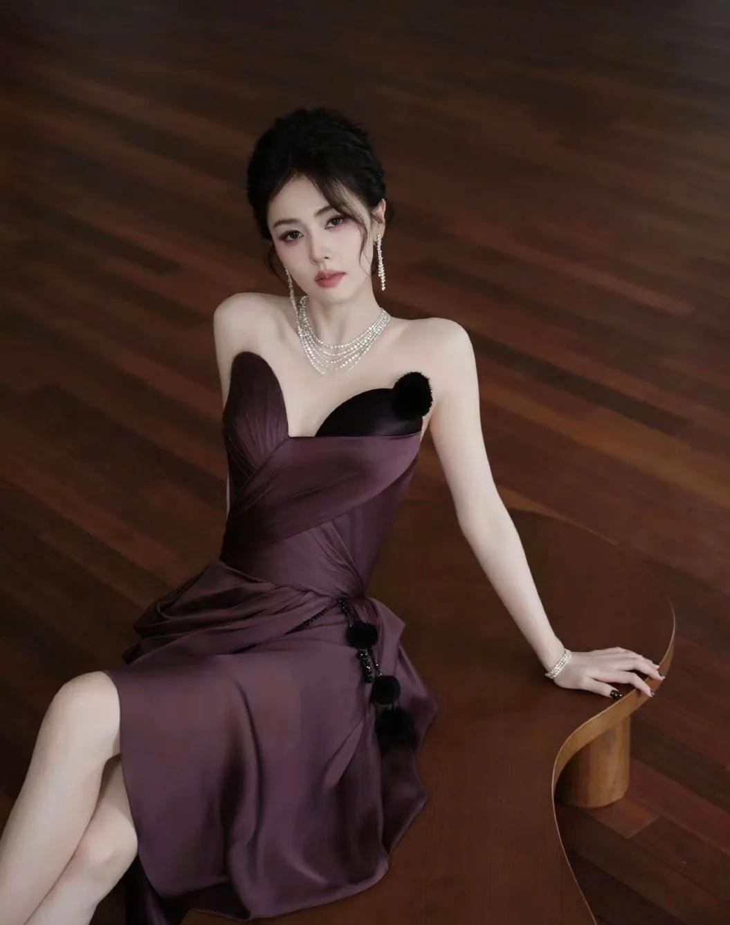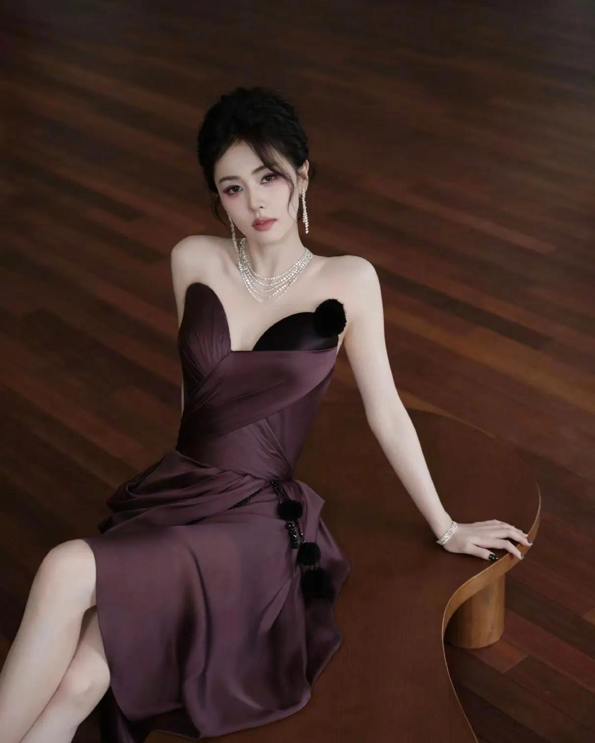 白鹿这组酒红裙造型杀疯了!是坠入人间的贵气精灵吧 谁能扛住白鹿这身酒红缎面裙? 抹胸设计露肩颈,黑绒绒装饰添了点娇憨,配上叠戴钻石链,又贵又灵的氛围感直接拉满。侧坐时露腿的线条、慵懒托腮的神态,灵动里裹着点柔媚,这哪是明星,明明是把“贵气精灵”穿在了身上✨