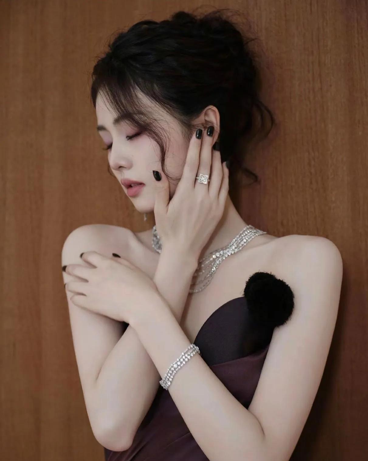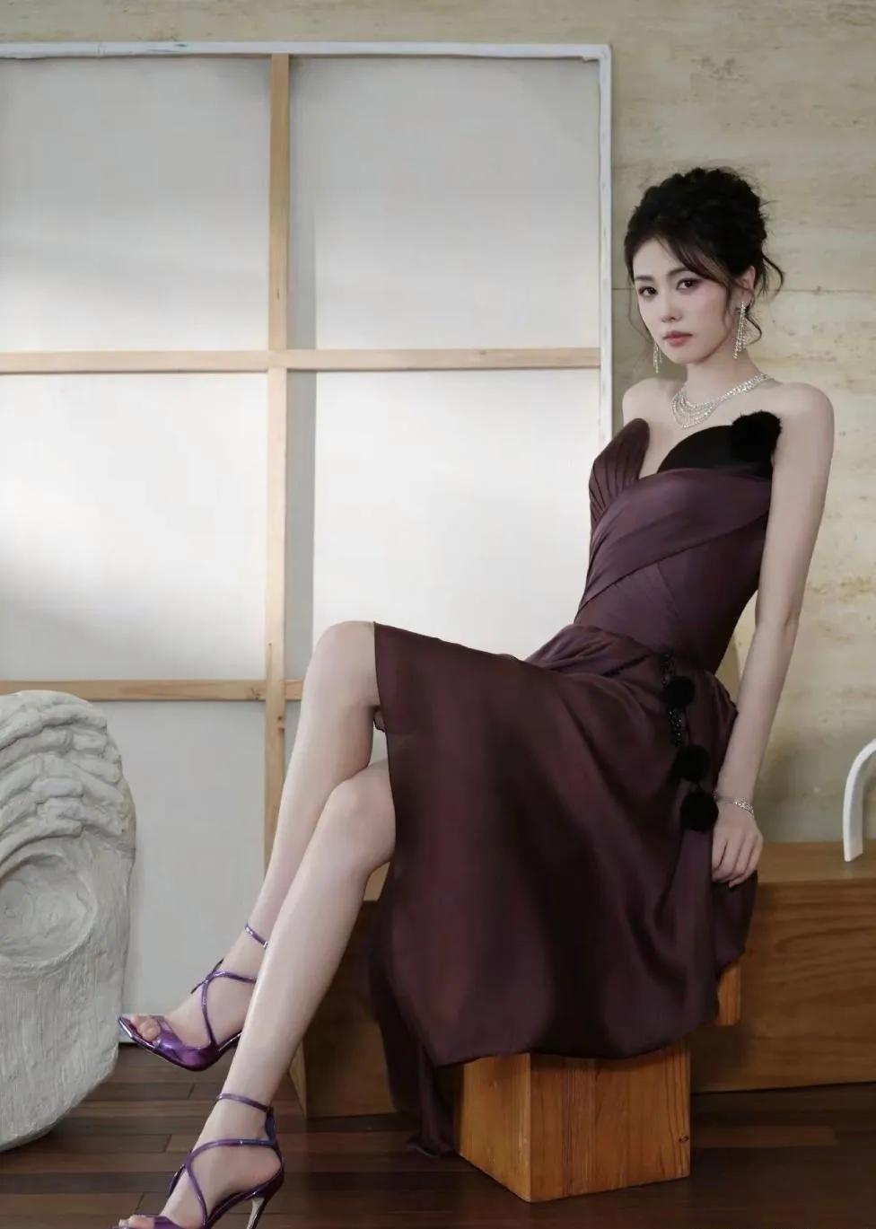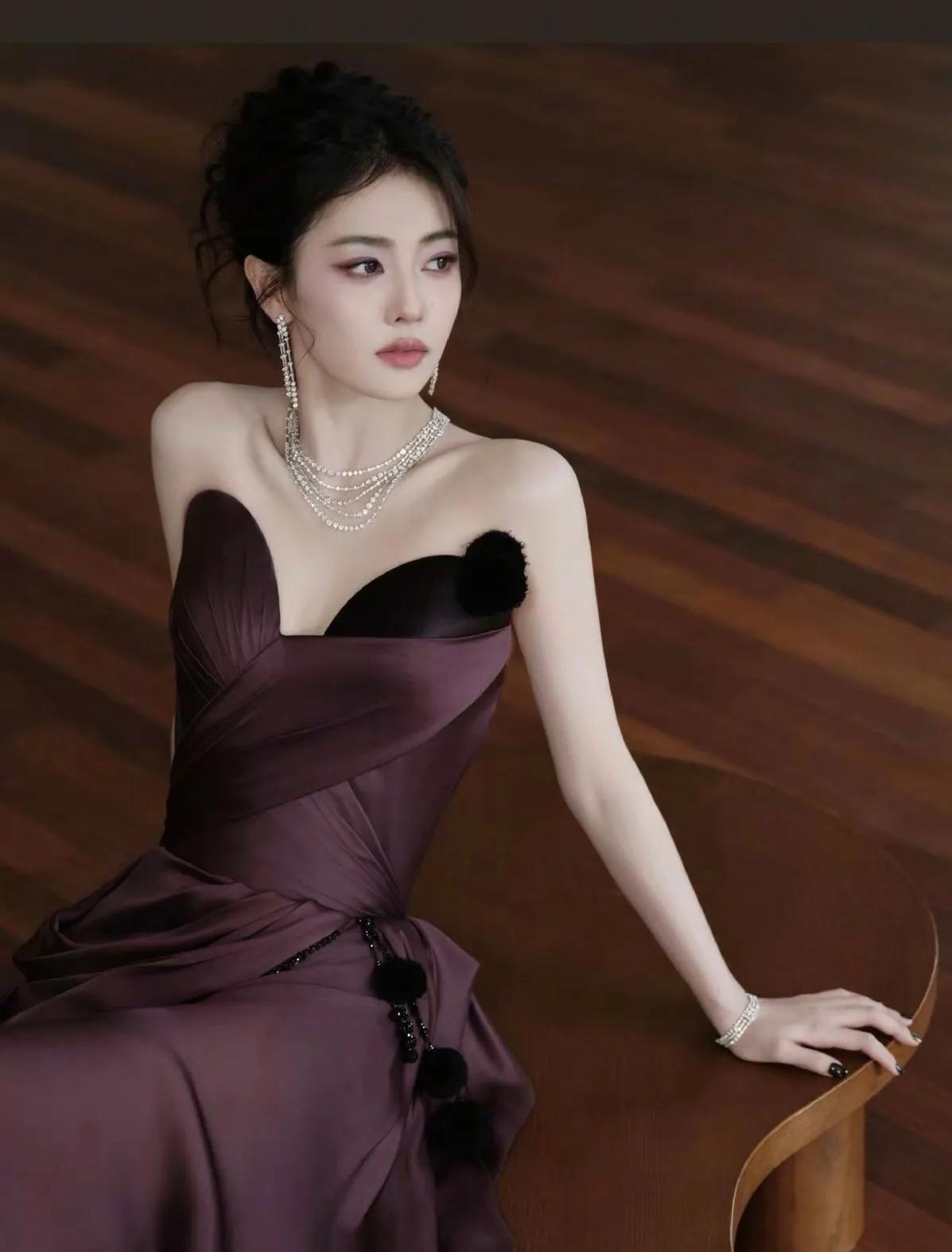 白鹿这组酒红裙造型杀疯了!是坠入人间的贵气精灵吧 谁能扛住白鹿这身酒红缎面裙? 抹胸设计露肩颈,黑绒绒装饰添了点娇憨,配上叠戴钻石链,又贵又灵的氛围感直接拉满。侧坐时露腿的线条、慵懒托腮的神态,灵动里裹着点柔媚,这哪是明星,明明是把“贵气精灵”穿在了身上✨