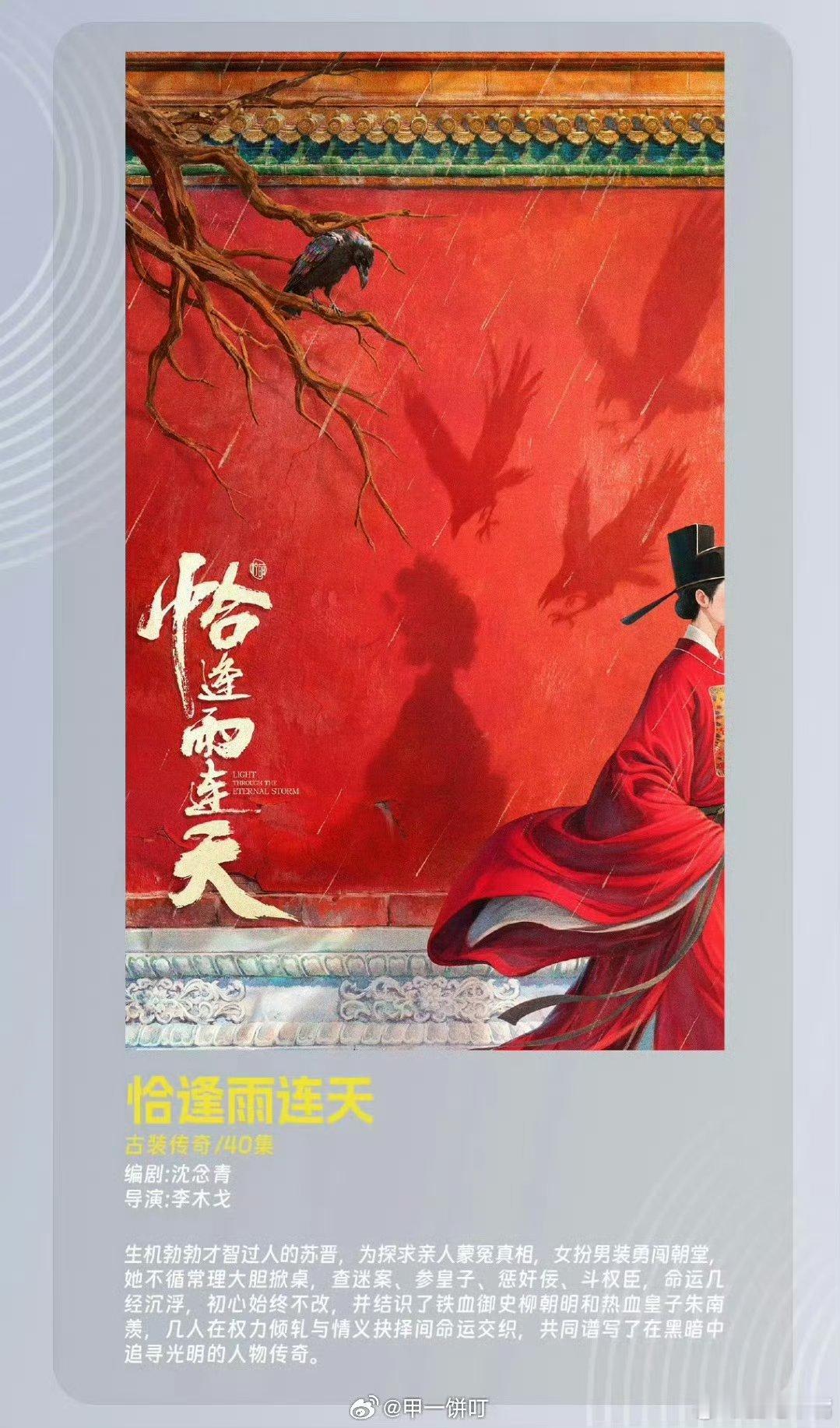 恰逢雨连天 🍉古装电视剧《恰逢雨连天》明年开机领衔主演:刘宇宁