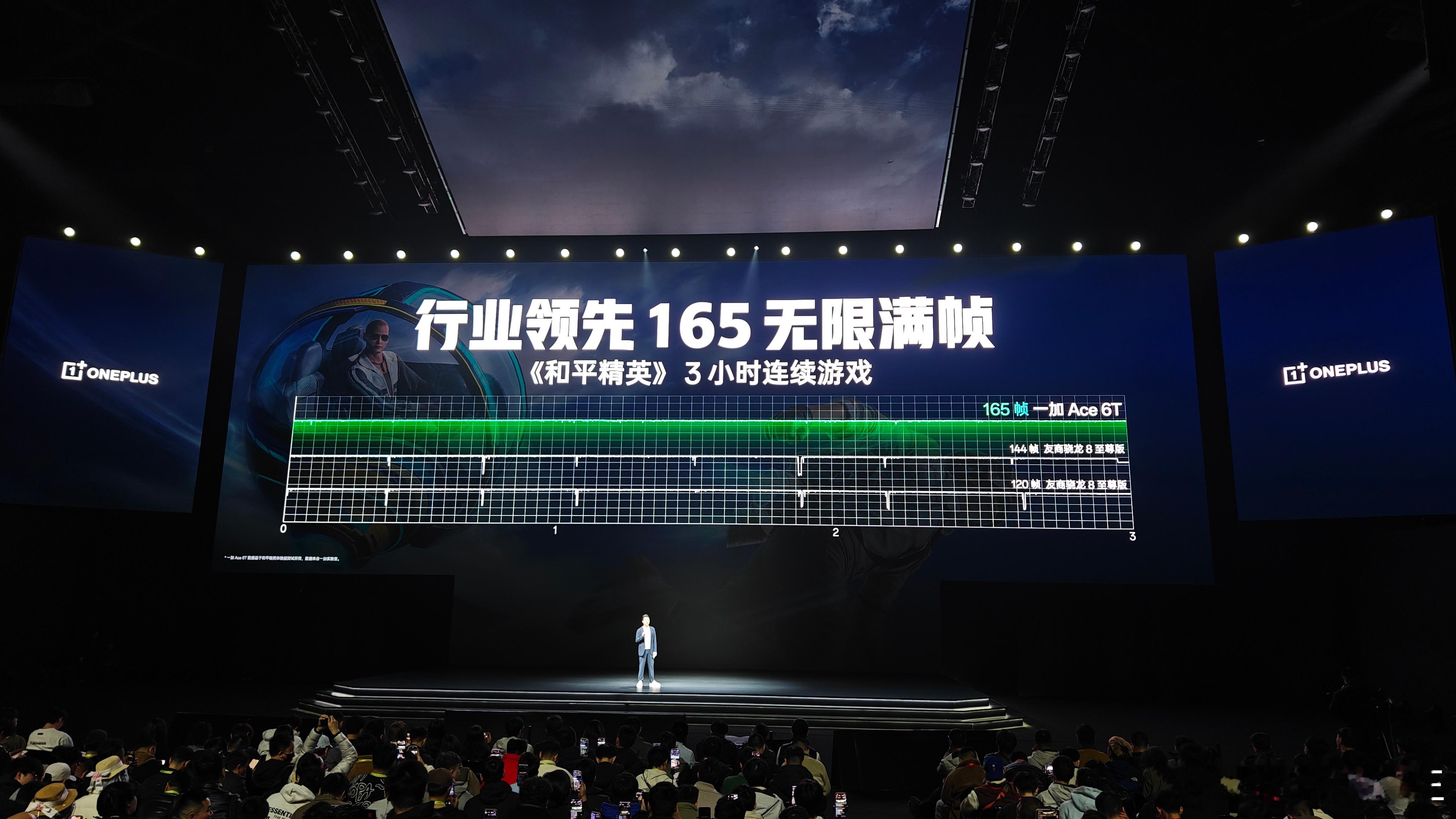 一加Ace 6T搭载与一加15同款的Ultra级165Hz 极速高刷屏,以“快人两步,轻松制胜”的竞技优势,持续引领高帧电竞体验。相较120Hz屏幕,其每秒画面数量对提升45帧,全链路操作时延缩短10ms,能够帮助玩家更早发现敌人、更精准操作。此外,一加Ace 6T做到了行业最豪华的原生165帧超高帧游戏阵容,全面覆盖MOBA,FPS,格斗,赛场,音游等5大类电竞手游,重点适配《三角洲行动》、《使命召唤手游》、《穿越火线-枪战王者》、《暗区突围》等主流FPS游戏。一句话总结:165极速高刷,旦用难回,带给你无法拒绝的爽感体验!一加Ace6T新品发布你用过165Hz手机打游戏吗