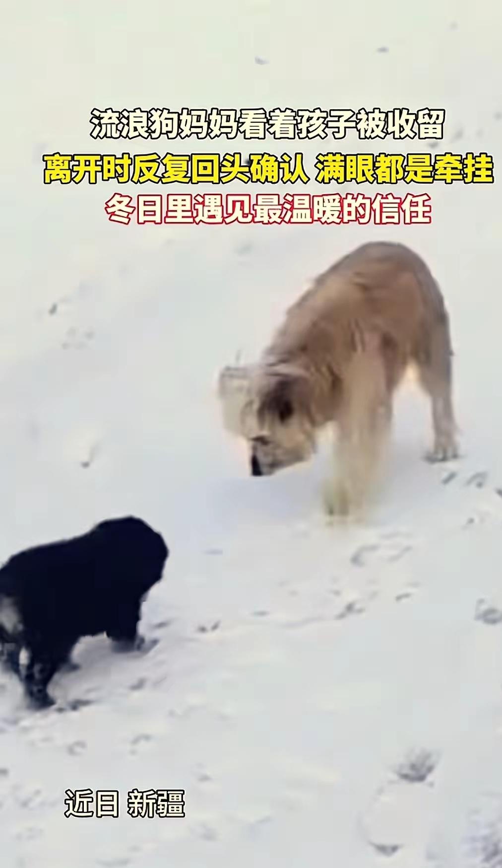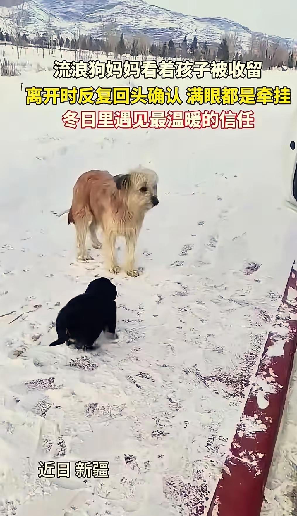冰天雪地的公路上,一只流浪的狗妈妈突然停下脚步,叼着刚满月的小狗崽,跌跌撞撞地冲向停在路边的车。它咬着小狗往车窗边推,爪子还不停地扒拉着车门,急得呜呜直叫,好像在拼命说“救救它”。 新疆那边正下着鹅毛大雪,路边的积雪都快没过脚踝了。车主摇下车窗才看清车底下缩着的小家伙——毛茸茸的一团,眼睛还没完全睁开。狗妈妈这才恋恋不舍地看了它好几眼,尾巴夹得紧紧的,一步三回头地消失在白茫茫的风雪里,连背影都透着一股“把孩子托付给你了”的决绝。 后来车主才明白,这只狗妈妈其实是怕在这么冷的天里自己养不活这几个孩子。它在路边转了半天,看到这辆车停下,就想着找个靠谱的好心人来帮忙。车主一家知道后特别感动,不仅留下了这只小狗,还开车沿着刚才的路往回找,没想到真的在不远处的雪堆里找到了狗妈妈。更意外的是,狗妈妈窝里还有另外3个还没睁眼的小家伙,车主干脆把它们一起带回了家。 动物真的是有灵性的,狗妈妈为了孩子能活下去,连自己的安危都顾不上,这份母爱看得人鼻子发酸。而车主一家不仅收养了小狗,还把狗妈妈也接到了温暖的家里,他们的善举让这个大雪纷飞的冬天都变得特别有温度。 如果是你遇到这样的流浪动物,会愿意伸出援手吗? -search.byteimg.com/img/tos-cn-i-tjoges91tu/TPJSO74xaxDsc~480x480.jpeg