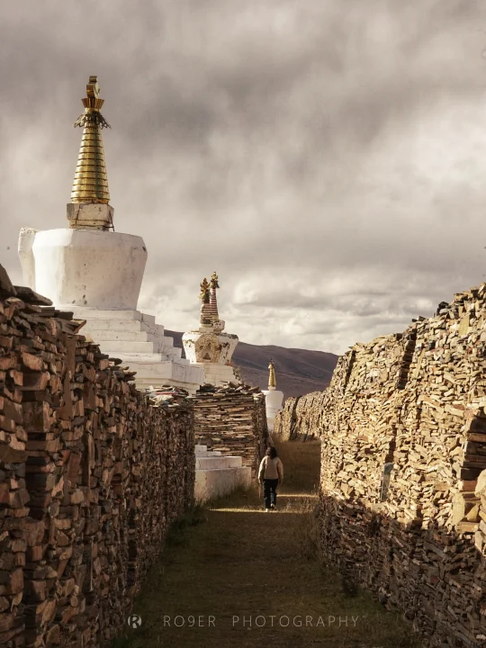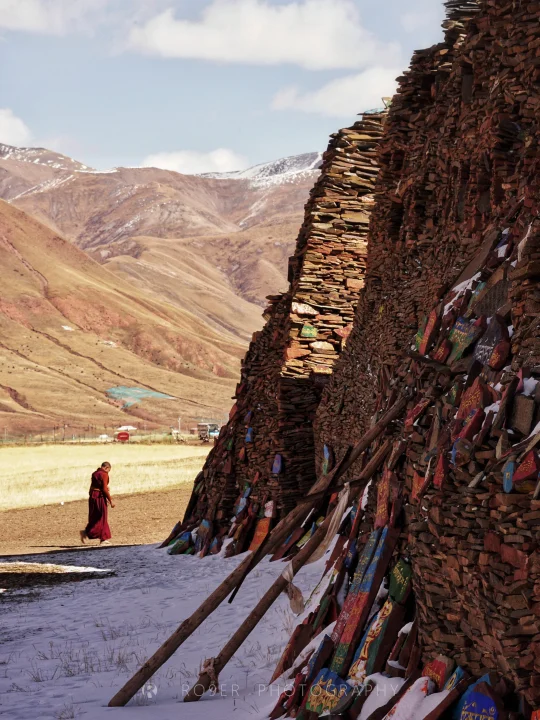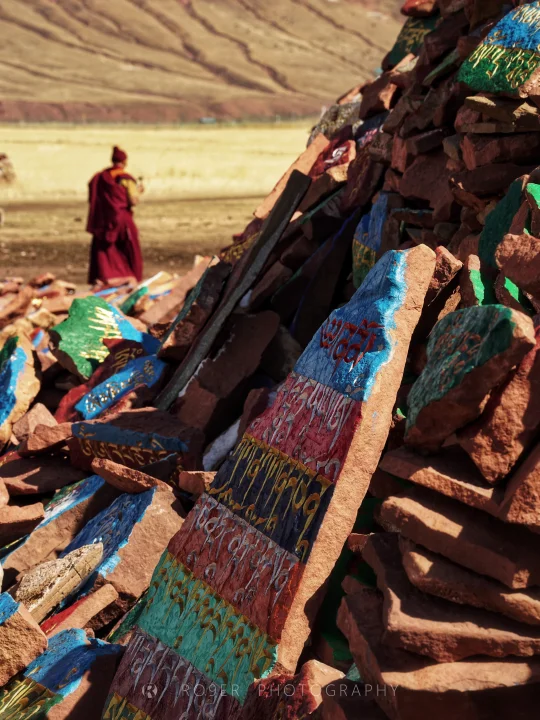 在进石渠的路上,就经常会看到由一层层写满经文的石板堆叠的、或大或小或长或短的城与墙了,玛尼堆常有,而如此大号的玛尼堆可并非随处可见,反而在如此偏远的石渠,它们成了本地居民虔诚信仰最具象化的体现——那是无数人历时几百年一石一砖的堆叠,当你初见的那一刻起,无形的信仰便在你的心中烙下长与宽的刻度‼️从此,信仰就有了形状‼️