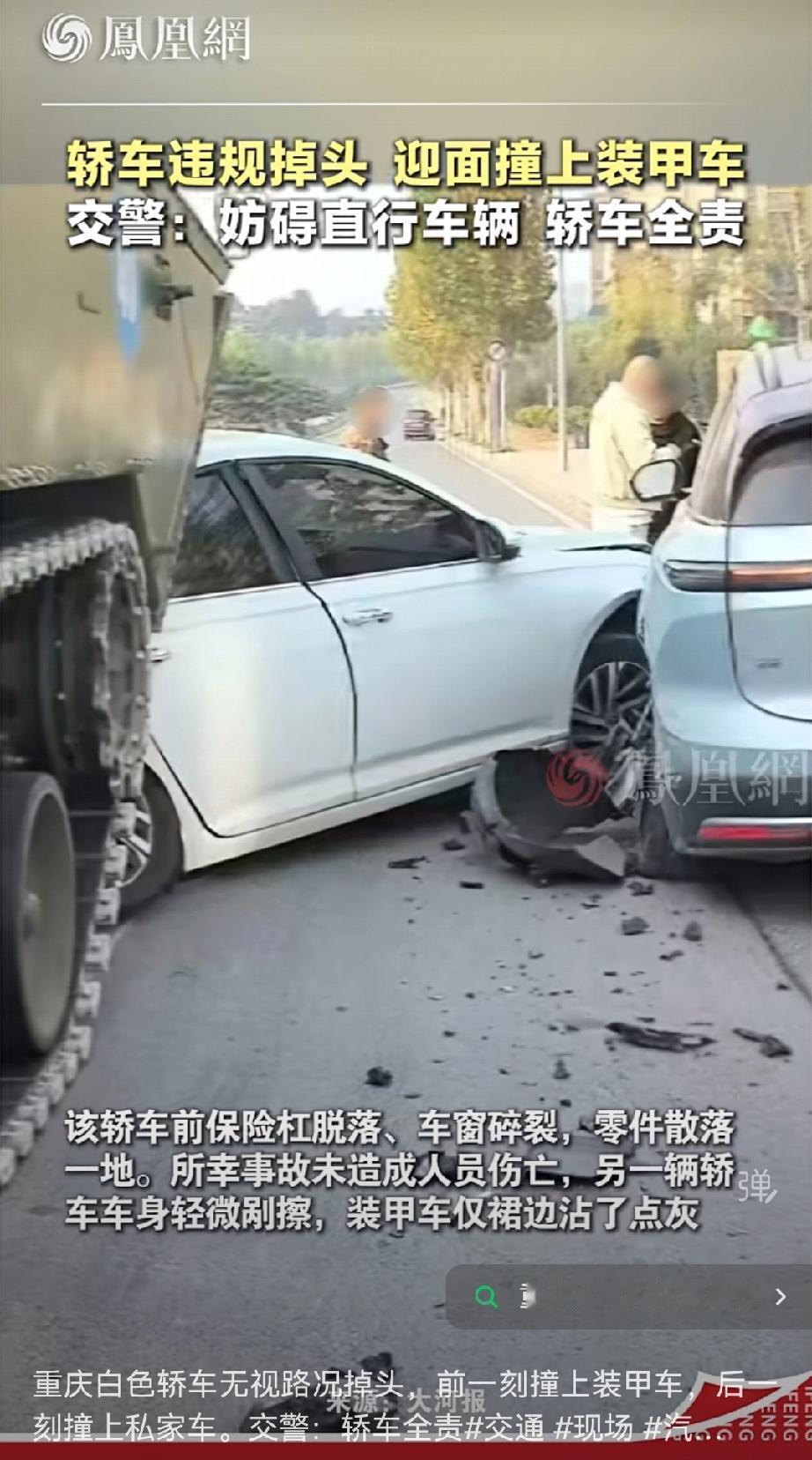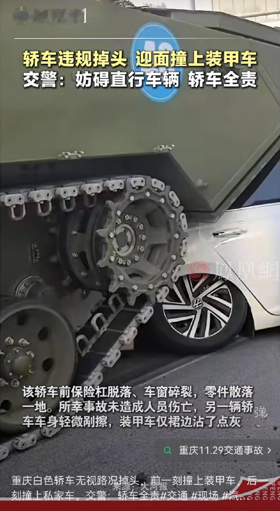 真有虎人啊!真有人开车撞上坦克了,这是多么的过度自信啊! 真是笑死,重庆一白色私