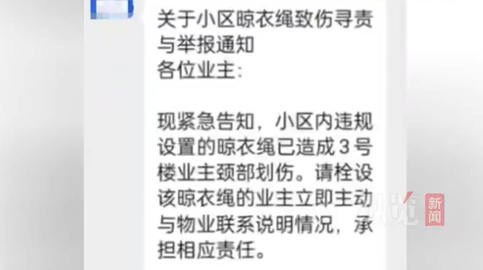 近日,来自山东的刘女士找媒体求助:她和20岁的儿子小丁租住在山东省德州市云县水岸花园一期。11月25日晚上,小丁骑着电动车回家,穿过小区广场时对面开过来一辆车,为了避开车辆,小丁想要从旁边的两棵树中间绕过去。 没想到,一条离地约1.6米的晾衣绳突然猛地勒住了小丁的脖子,就这样连人带车重重的摔在了地上。 很快,得知消息的刘女士赶来将小丁送到了庆云县人民医院。经检查治疗,小丁颈部长达10厘米的勒痕已结痂,但是喉咙和脖子还是有些疼痛,吃东西时吞咽有一些困难。 短短几天时间,小丁的检查费、治疗费就花了近1000元,后续要进行的疤痕修复又是一笔不小的费用。 刘女士称自己一个人把小丁养大,经济十分拮据。小丁身患重病还是残疾,平时两人要靠低保生活。这次意外增加的开支让她无法承受。 刘女士认为物业和在树上绑晾衣绳的人都有责任,希望他们能承担小丁的治疗费用并给予一定补偿。 有网友觉得这件事的责任在小丁自己,难道在马路上跌倒了要告路政吗?也有网友觉得私自在公共区域绑晾衣绳,本身就不合规,晚上光线不好很容易出事,就跟风筝线割喉一个性质。 目前,刘女士已经报警和寻求物业帮助。 水岸花园物业工作人员称小区里确实有此事发生,物业也多次巡查清理公共区域的晾衣绳,但是屡禁不止。事发地又属于监控盲区,现在他们只能在物业群发布通知,号召涉事业主主动站出来承担责任。