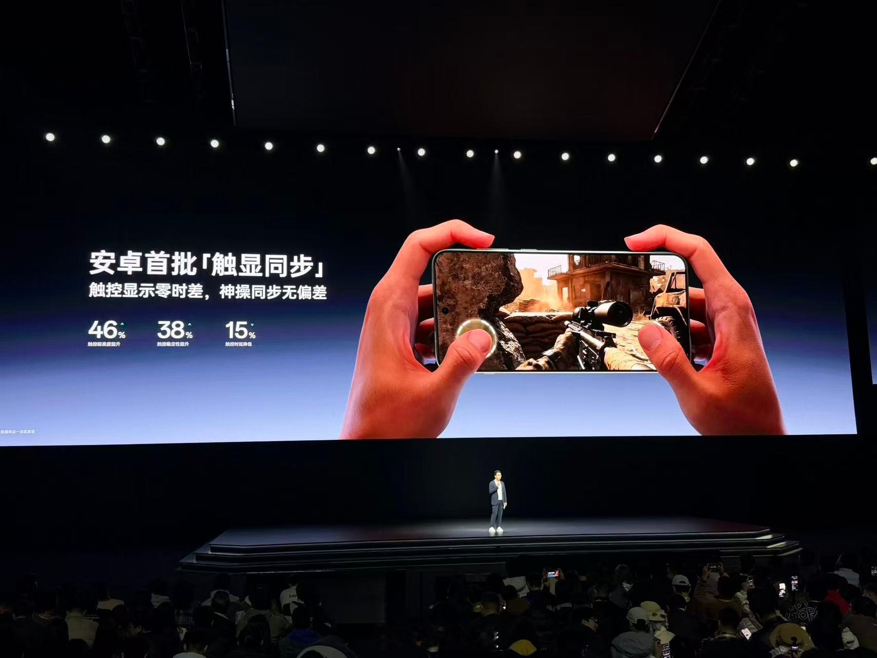 除了电竞芯片G2以外,这次也特别介绍了「灵犀触控芯片」。这是什么用呢?165Hz已经做到了很高帧率的水准了,但是触控跟不上也是个问题,如果跟不上,就会出现看到但是触控跟不上的情况,你想开镜的时候都跟不上你眼睛看到的。这个触控芯片就是提升了屏幕的触控采样率,通过多种算法解决屏幕断触的问题,也就让游戏操控变得更加「跟眼跟手」。然后,在触控这方面也专门用上了手柄级的陀螺仪,这个之前在一加15、Ace 6上也有,这次在Ace 6T同样也没缺席,游戏操控体感是一样的。一加Ace6T