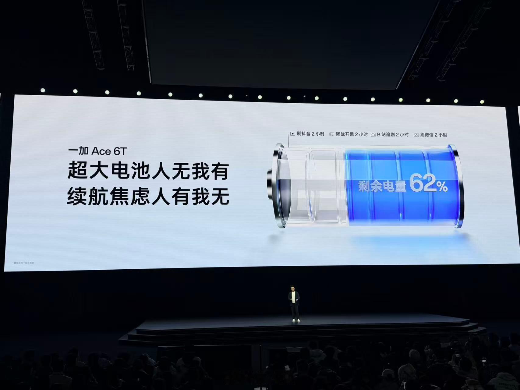 8300毫安时电池+100W超级闪充,连续游戏最长10小时,追剧超过29个小时,支持旁路供电和有线反充(爷青回,OTG充电宝功能)太特么离谱了一加Ace6T