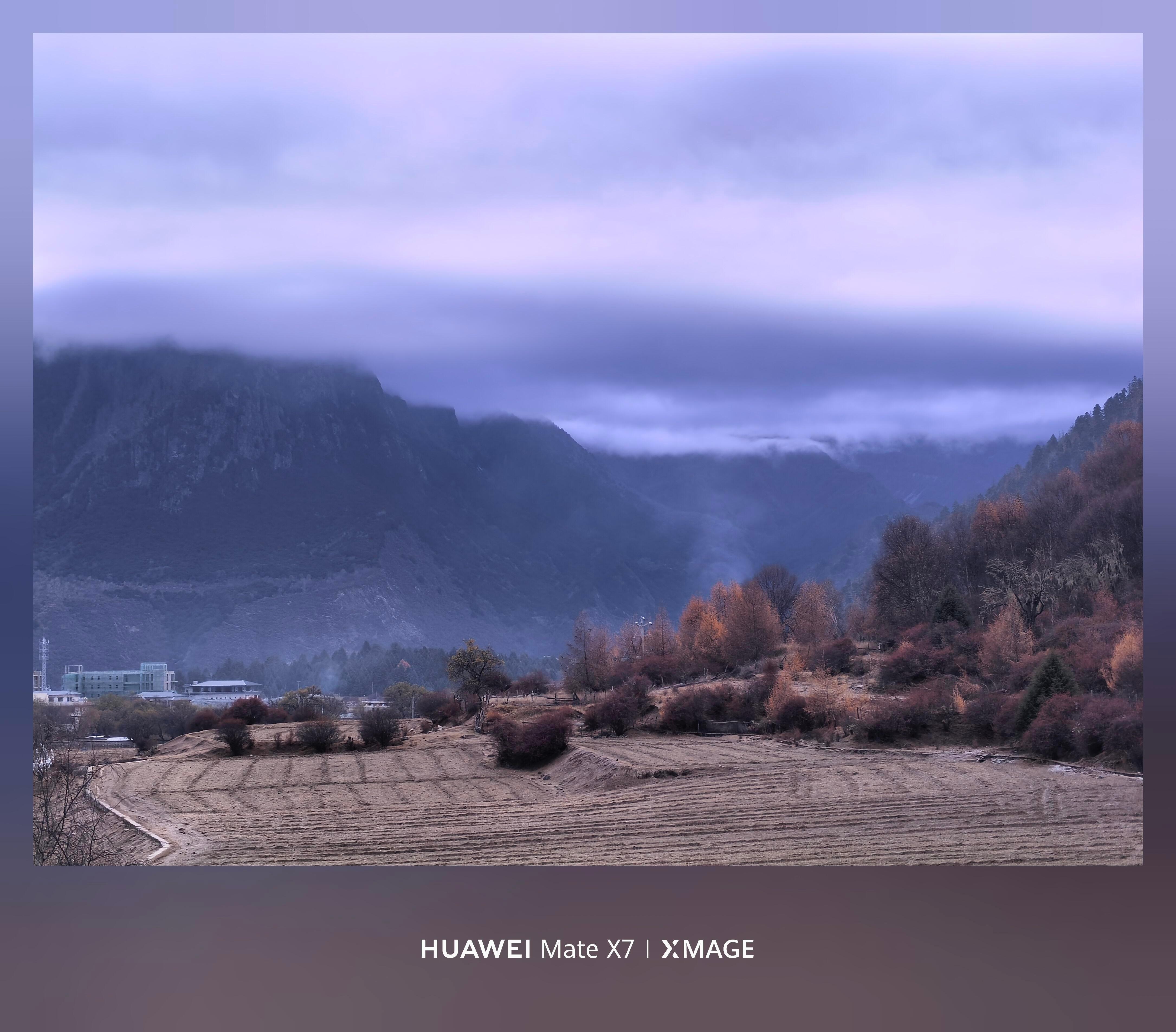 九寨沟熊猫海秋景里,红叶栅栏、蓝天与中式楼阁衬出复古优雅。