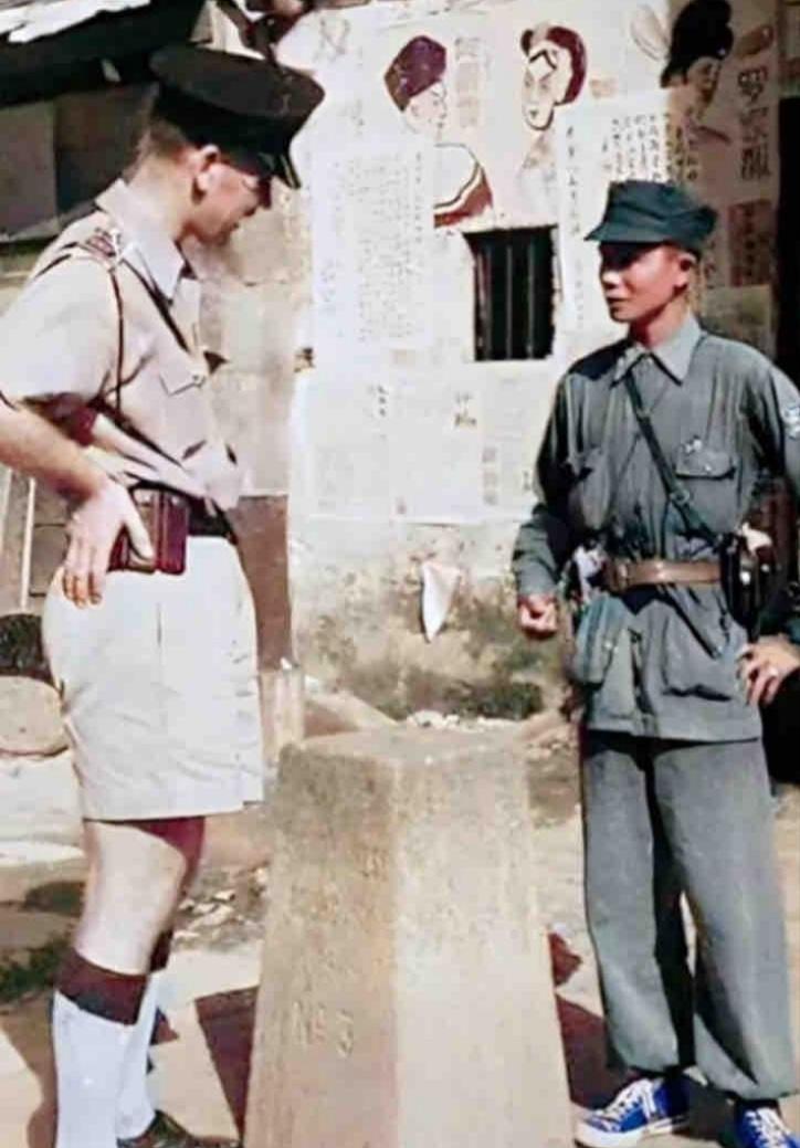 还真别说, 解放军小战士穿上匡威鞋后, 还挺显潮的。 这也不奇怪,他们本身就是一群很酷的人。 匡威品牌成立于1908年,如果慈禧太后晚死几年,可能有机会穿上。 当时,匡威鞋还不是潮流鞋,还只是实用功能的帆布鞋,工人士兵学生们都普遍穿。 对中国人来说,当然算奢侈品,当年的照片里面,高级将领也有穿的。 照片拍于1949年,解放军占领了宝安县,也就是今天的深圳,一名穿着匡威的解放军战士与港英警察,在中英街对峙。