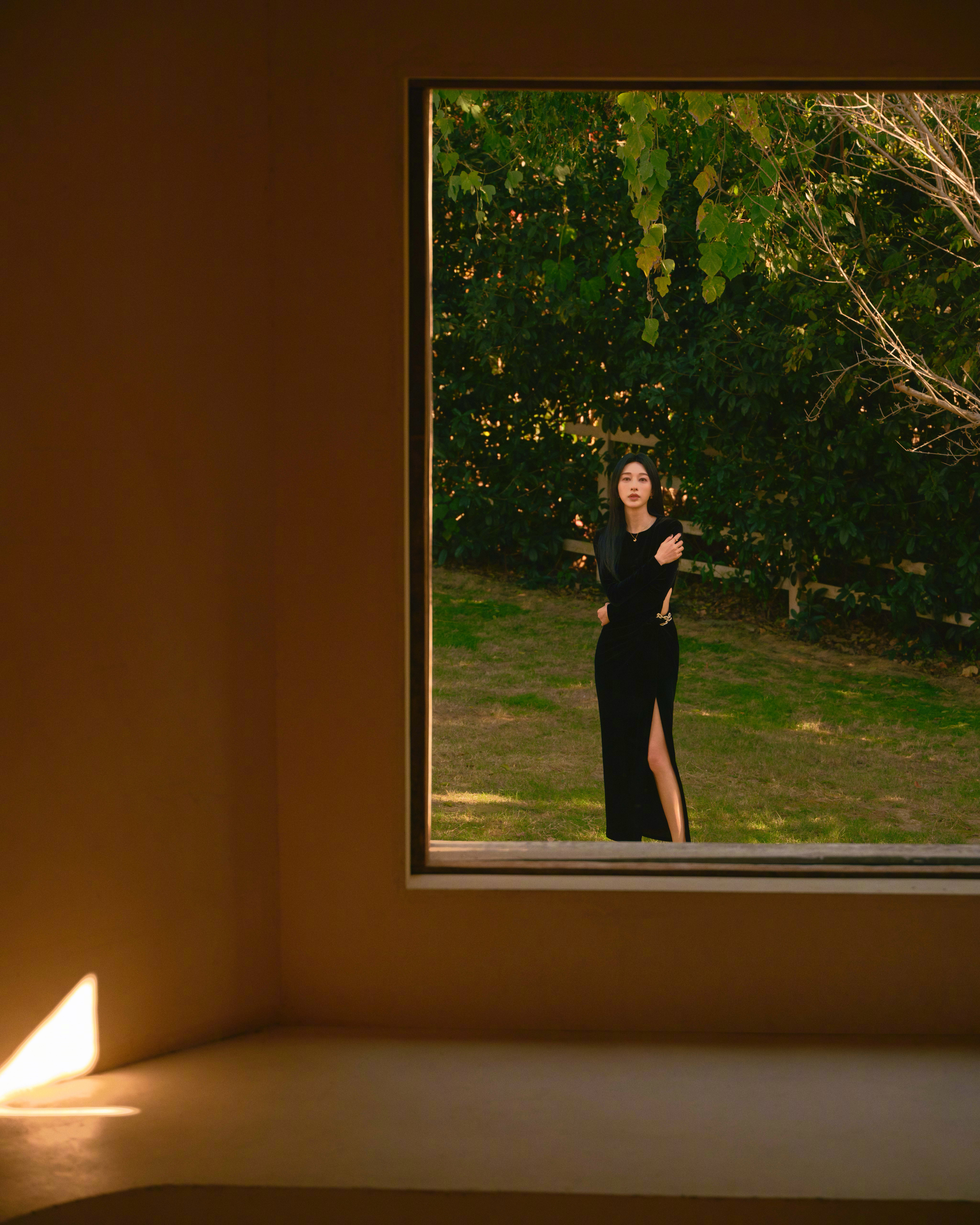 张俪,淡粉色的秋日穿搭色彩。张俪