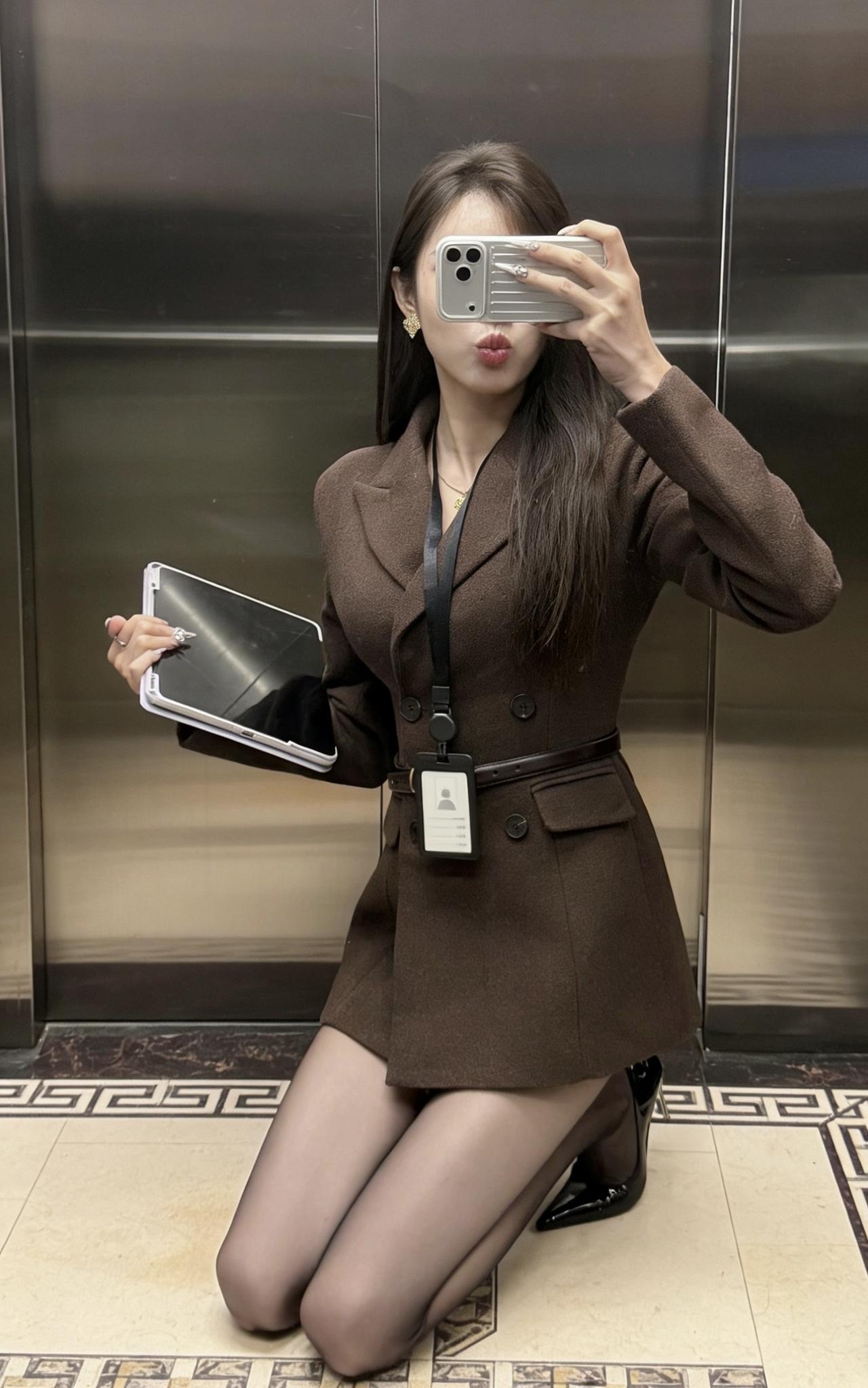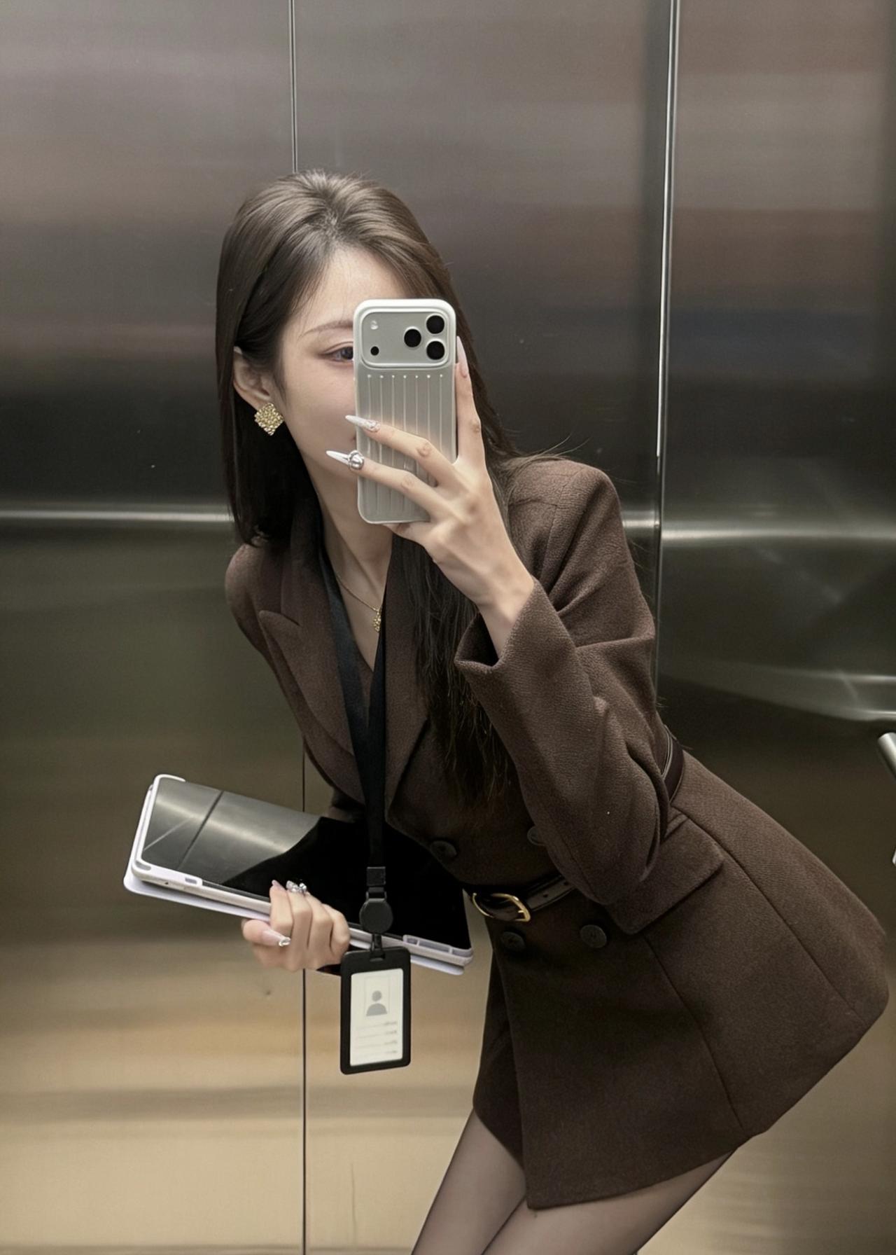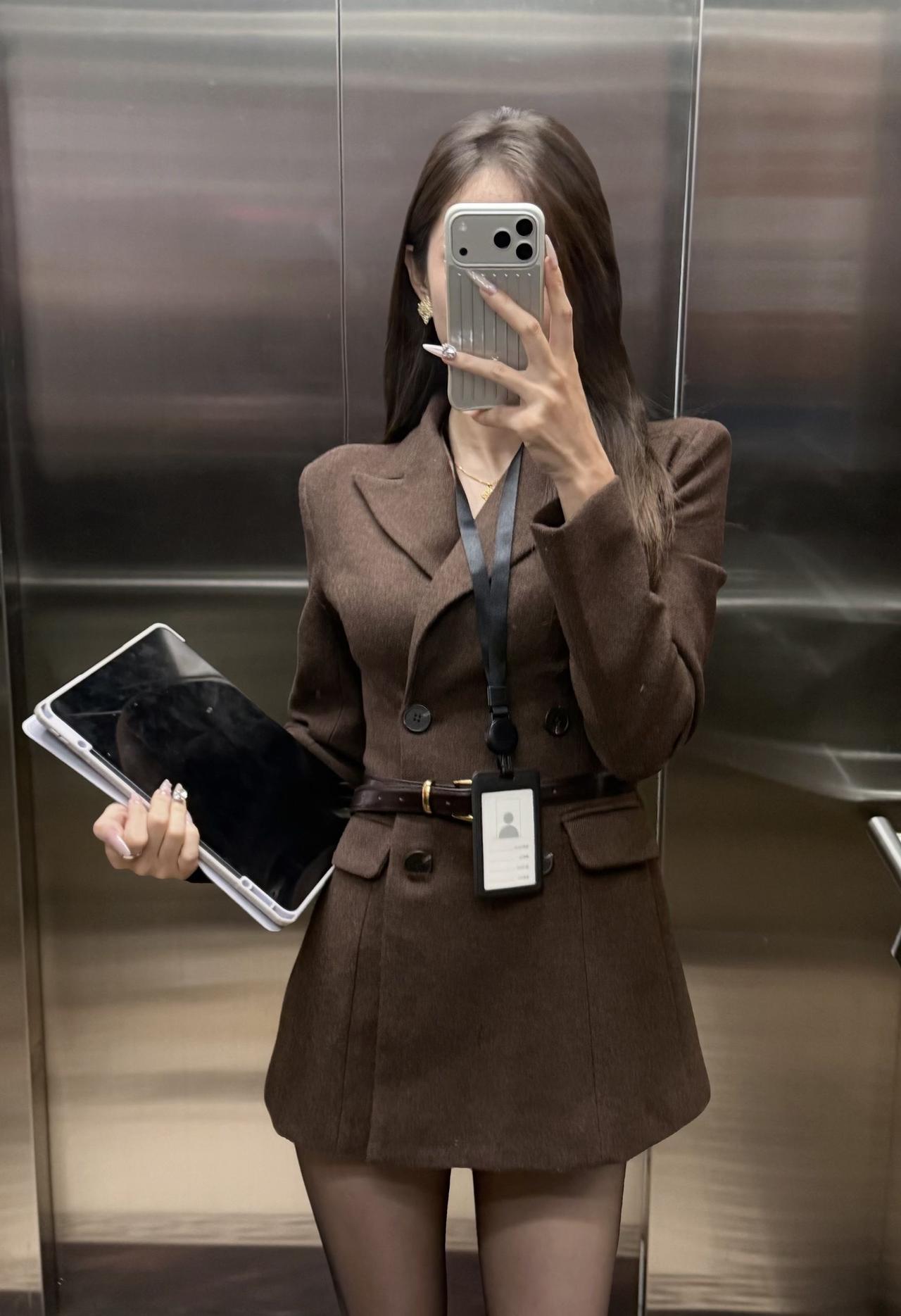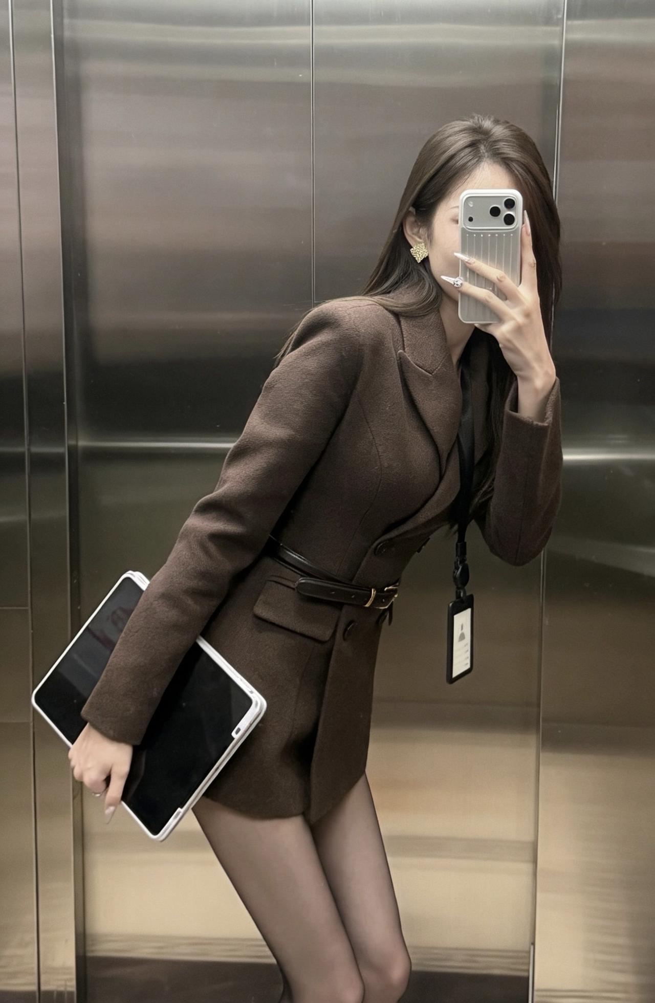 今日穿搭推荐:棕褐色收腰西装裙+打底裤+黑色高跟鞋的组合,风格是“轻熟职场风+精致辣妹感”,加上羽绒服或者皮毛,保暖又时尚。 收腰西装裙既保留了西装的干练,短款版型又增加了时尚感;黑丝和高跟鞋提升了精致度。 适合场合:日常通勤、逛街、轻职场场景、轻社交场合、非正式商务场合。