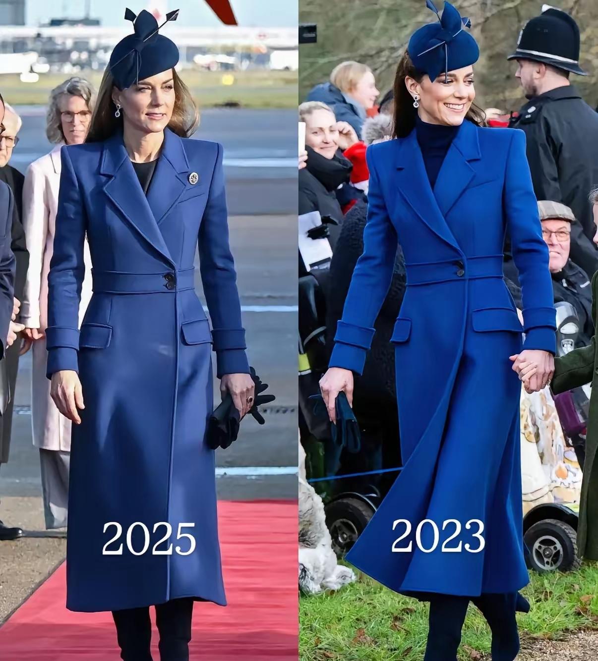 “旧衣新穿”,凯特这风格,完全是复制了戴安娜 蓝色大衣搭配同款色调帽子,再加上蓝宝石耳环,有时尚又有温度,很符合凯特的风格,而且有戴安娜的即视感。 这是凯特迎接德国总统夫妇的造型,闪耀又独特,让人惊喜的是,这个造型她两年前就用过,没想到过了700多天,凯特身材依然能驾驭。 不得不说,王妃的身材保持得真不错呀!