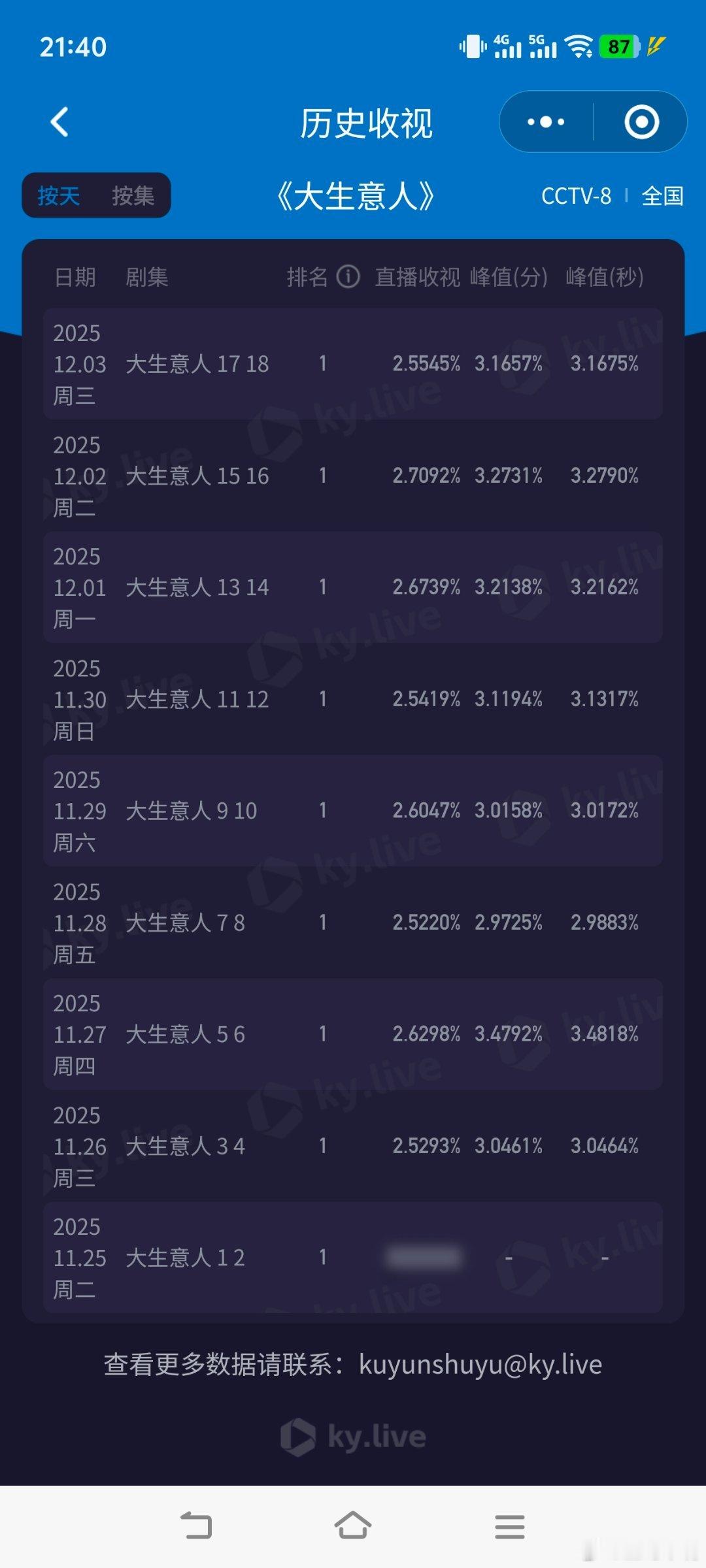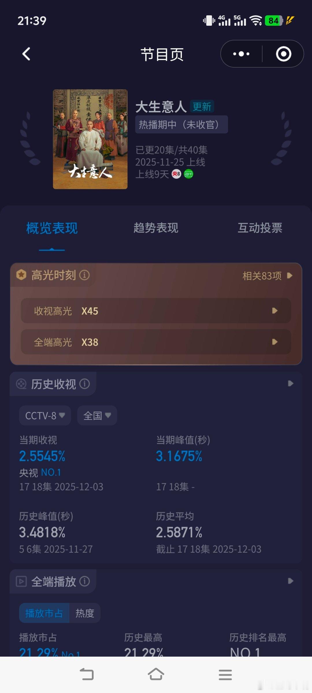 古平原 进狱系《大生意人》今晚酷云峰值3.1675,平均2.5545,cvb估值