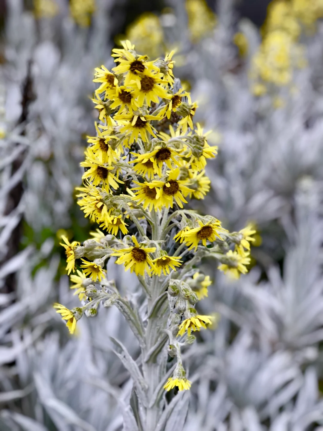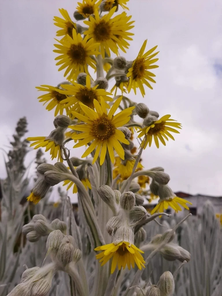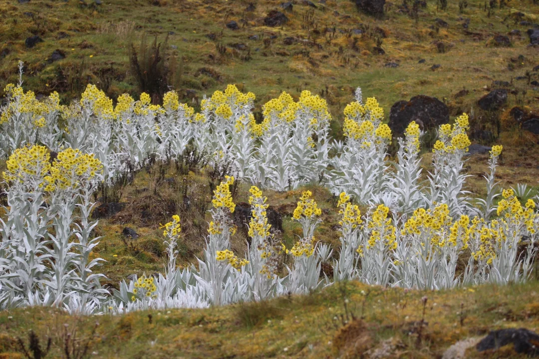这种令人惊叹的高海拔多年生植物,在阳光下生长,分布在哥伦比亚和厄瓜多尔的灌木丛中,海拔3100米至4600米。 它形成一簇簇玫瑰花结,有柔软、浓密的毛、明亮的银白色“兔耳”叶子和高高的亮黄色飞花花它需要凉爽的气候,没有酷暑或酷寒,才能生长良好。