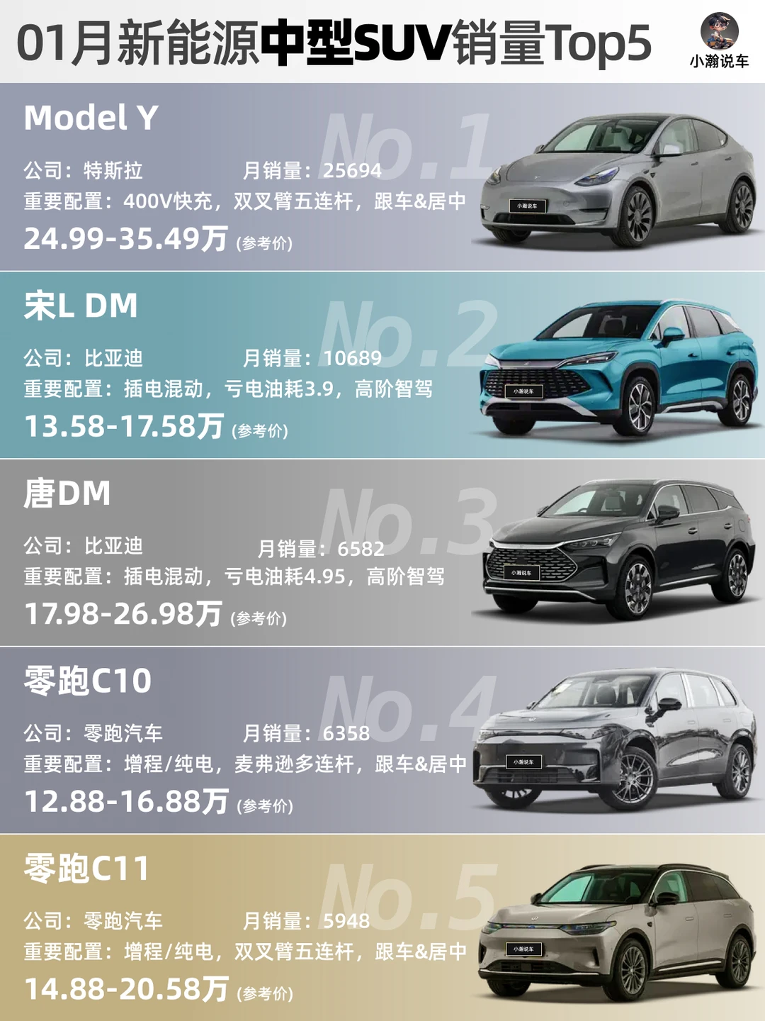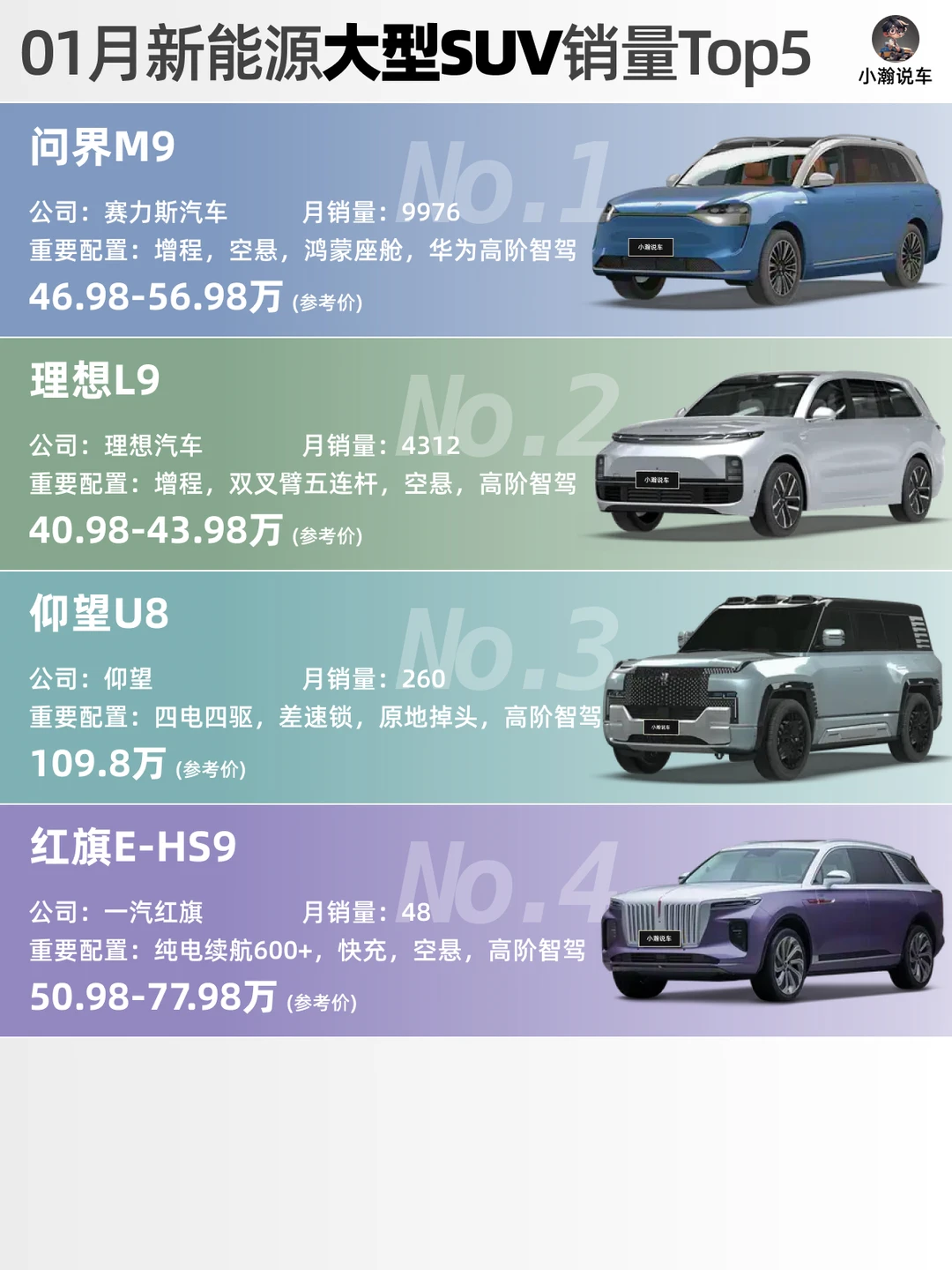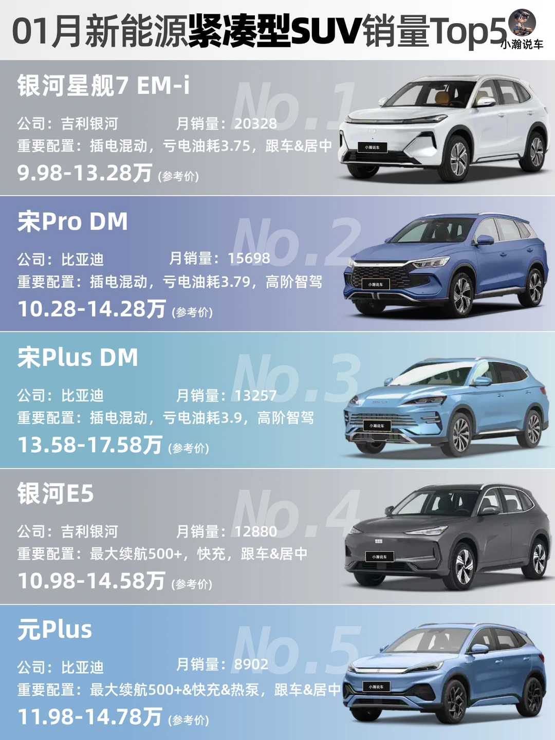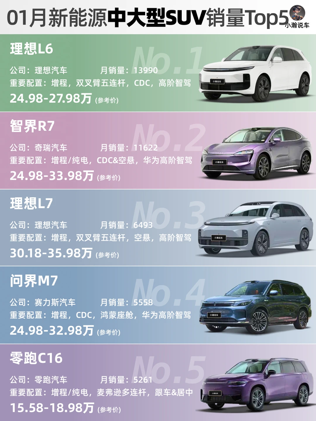 1月SUV销量榜:华为理想稳固,吉利再战迪王