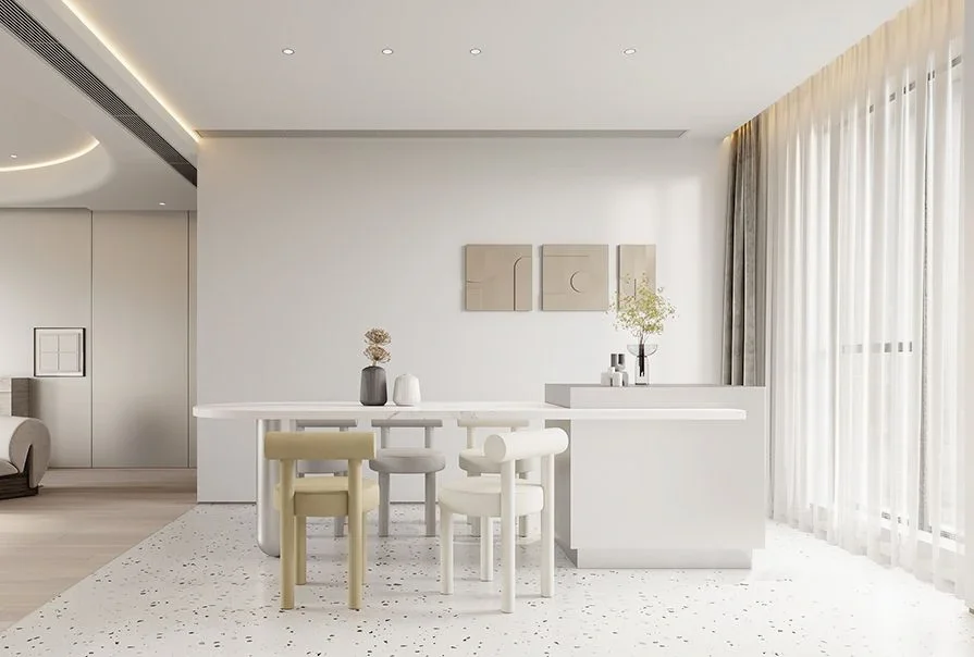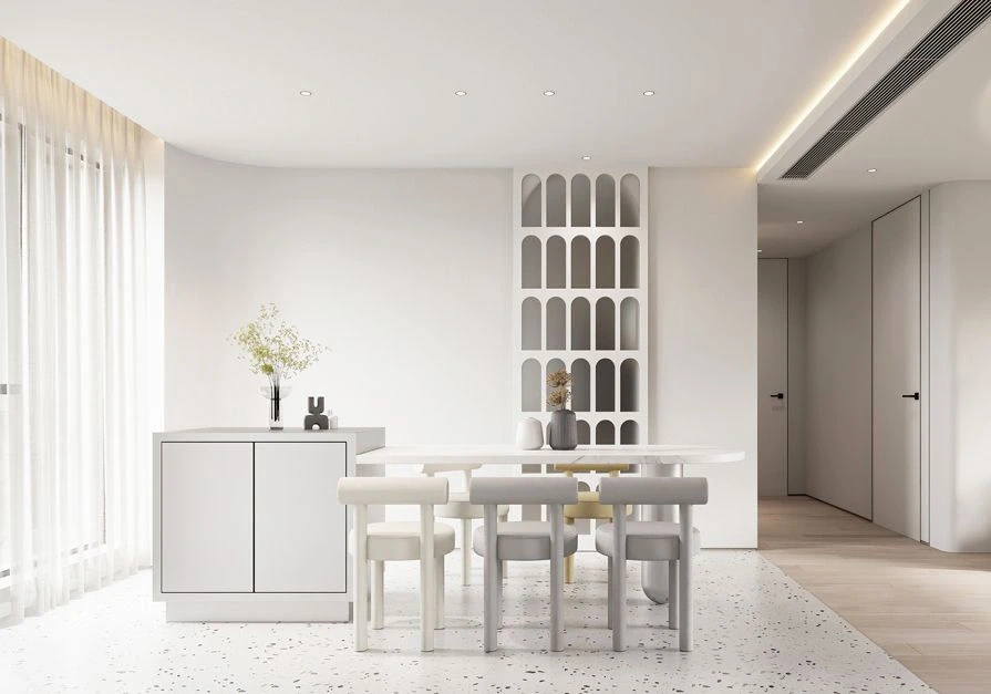 超火中岛台餐桌+拱形门设计,奶油风装修!